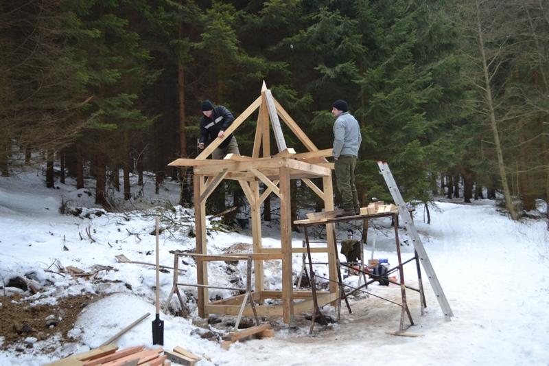Brigáda na Demelově kapli ve Vysokém lese | Foto: Spolek archaických nadšenců, Sebranice