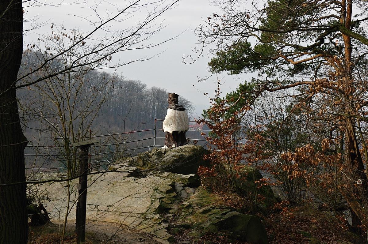 Z dálky vypadá socha jako postava poutníka modlícího se na skále | Foto: Miroslav Kobza