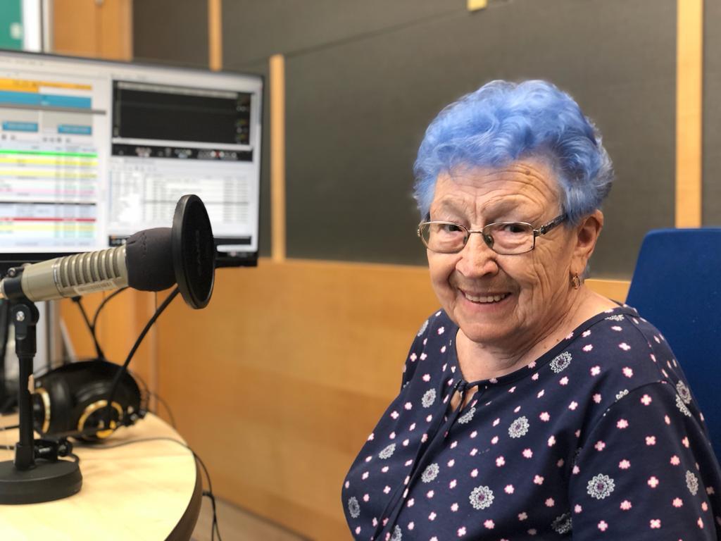 Skalní fanynka 1. FC Slovácko Růžena Pašková ve studiu Českého rozhlasu Zlín | Foto: Růžena Vorlová, Český rozhlas