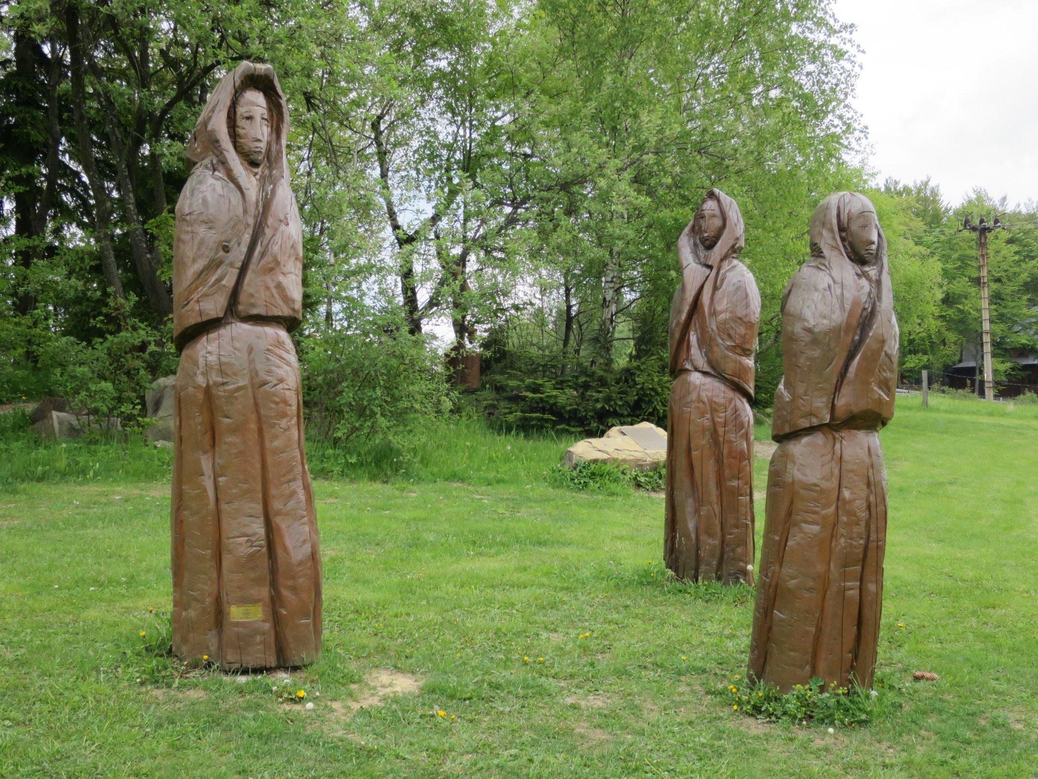 Stezku doplňují dřevěné sochy představující nejen vybájené postavy z pohádek a pověstí, ale i původní obyvatele při práci nebo tanci | Foto: Saskia Mišová, Český rozhlas