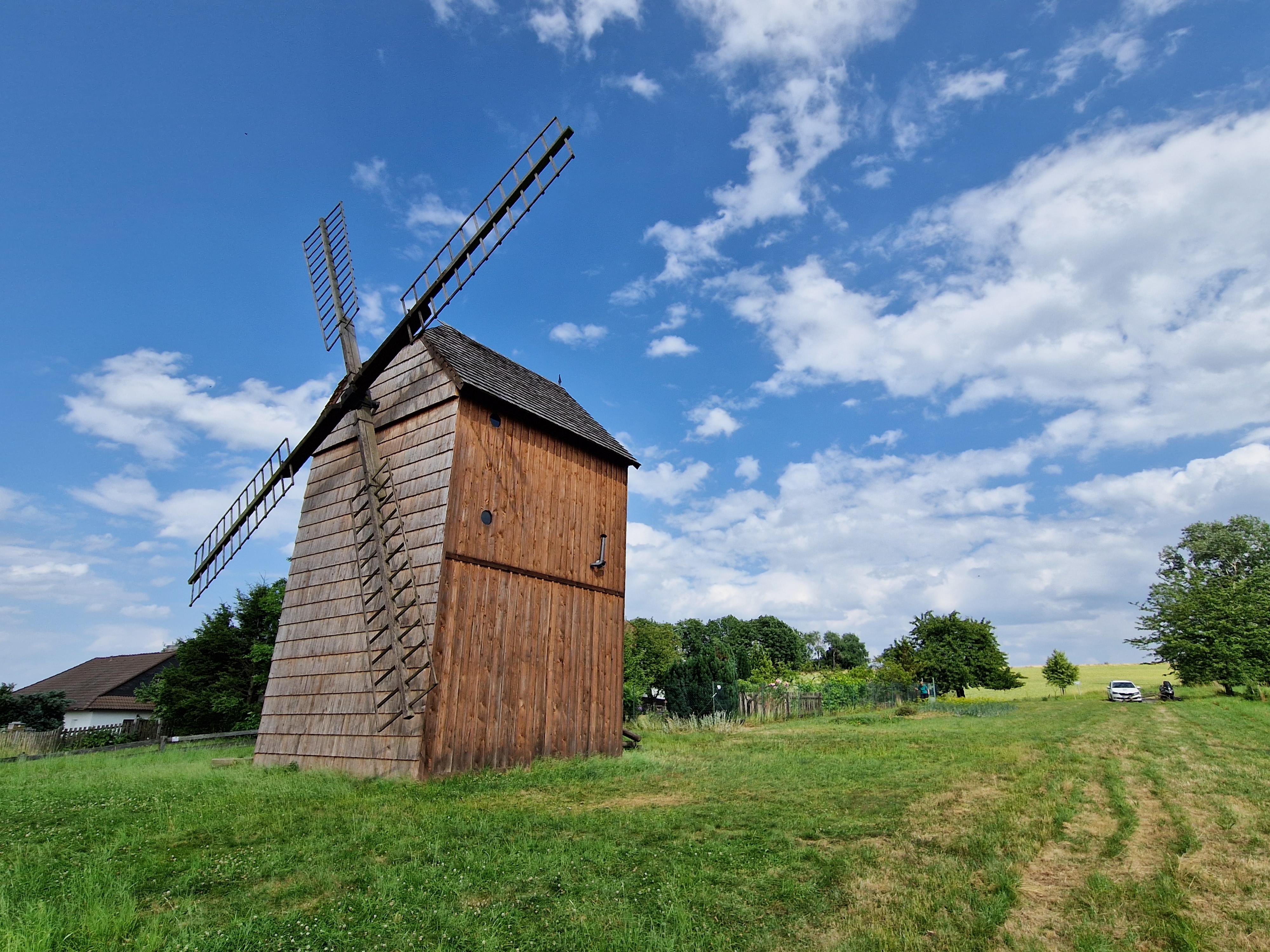 Na kopci u Velkých Těšan na Kroměřížsku pořádně fouká. I proto tam od roku 1830 stojí dřevěný větrný mlýn takzvaného německého typu.