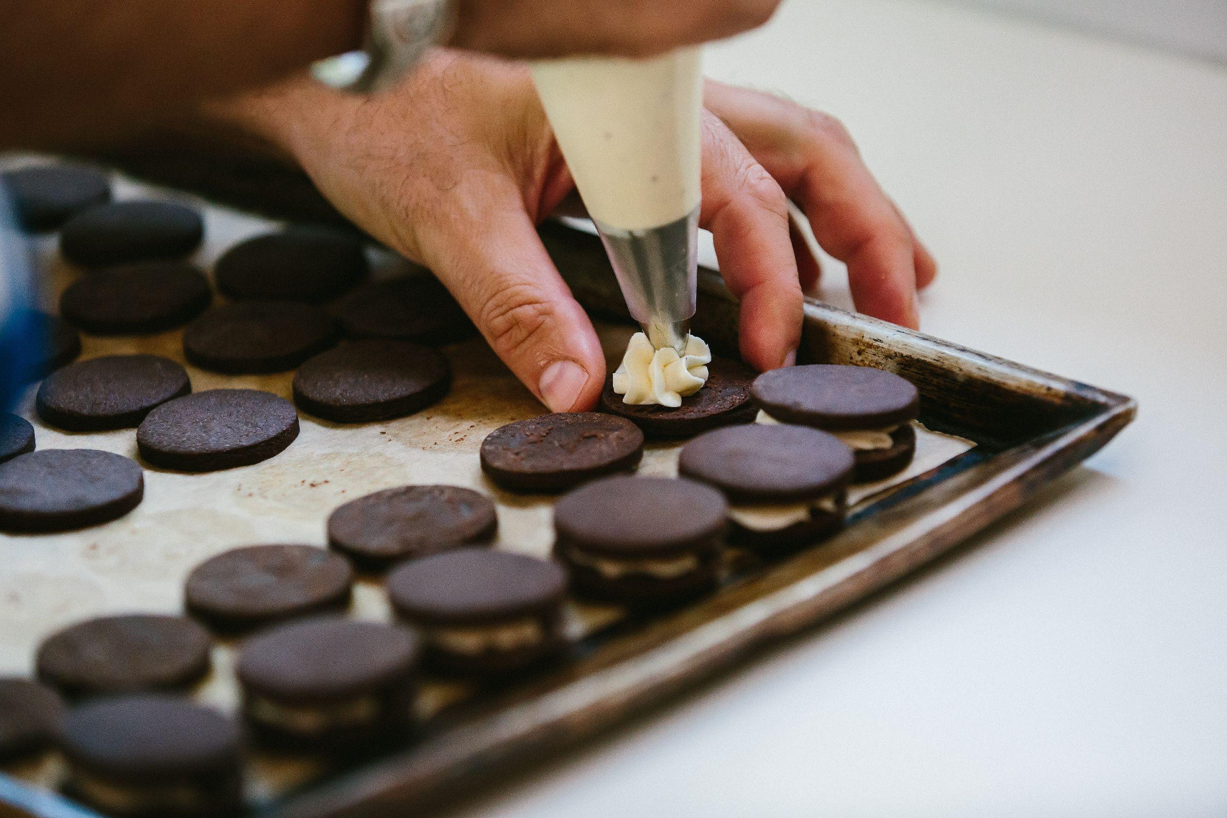 Upečená a vychladlá kolečka naplníme krémem pomocí špičky | Foto: Jana Volková