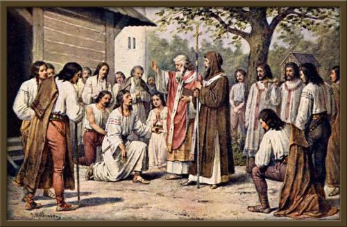 Solunští bratří Konstantin a Methoděj roku 863 přišli na Velehrad („Historie českého národa v obrazech“) | Foto: Josef Mathauser