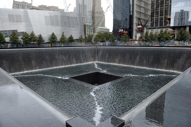 Památník, připomínající oběti teroristických útoků 11. září 2001, na místě jižní věže Světového obchodního centra | Foto: Susan Walsh, ČTK