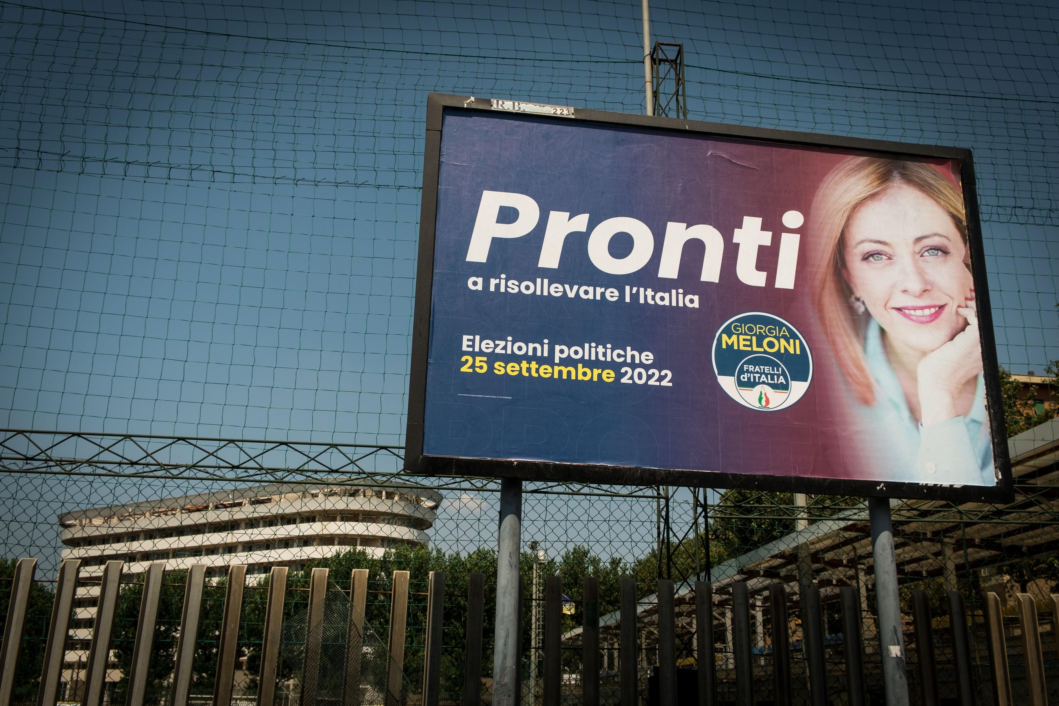 Giorgia Meloniová na předvolebním billboardu | Profimedia
