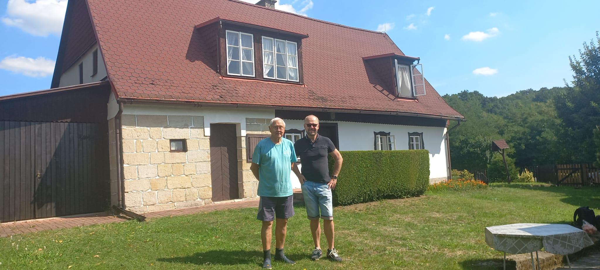 Václav Žmolík na návštěvu u herce Jaroslava Satoranského na jeho chalupě na Českolipsku.