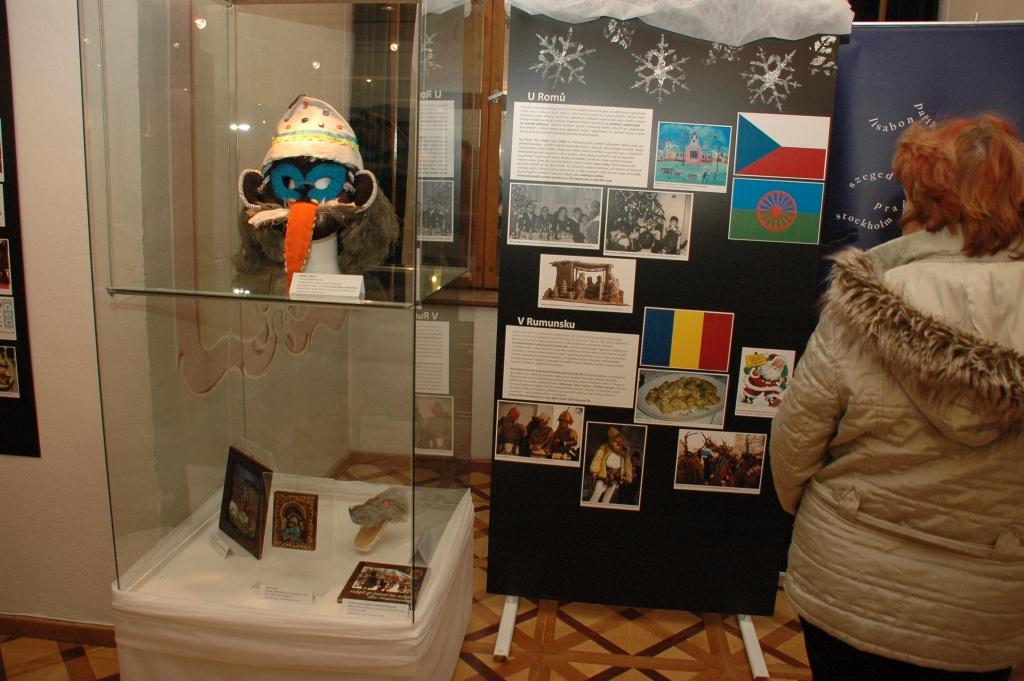 Předměty z Rumunska, nahoře je vidět maska Cikána pro vánoční hru s kozou | Foto: Jana Šustová