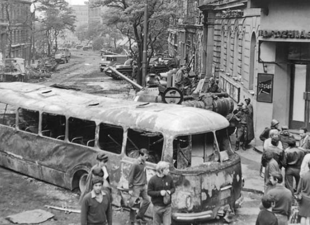 „Vážení posluchači, zůstaňte u svých přijímačů.“ Tím vyzval 21. srpna 1968 krátce po půl druhé ráno hlasatel Vladimír Fišer obyvatele Československa. Rozhlas běžně končil vysílání ve dvě hodiny v noci, ale tentokrát tomu bylo jinak. V 1:55 se ozvala slova, která se řadě lidí navždy vryla do paměti: „Vojska Sovětského svazu, Polské lidové republiky, Německé demokratické republiky, Maďarské lidové republiky a Bulharské lidové republiky překročila státní hranice…“ Po několika prvních větách se Fišerův hlas na hlavních vysílačích ztratil, protože je spoje na příkaz ředitele Karla Hoffmana vypnuly. Člověk by si myslel, že už se nikdy nic podobného nemůže opakovat… Málo známý snímek ukazuje Vinohradskou ulici pár metrů od rozhlasu během srpnových událostí 1968
