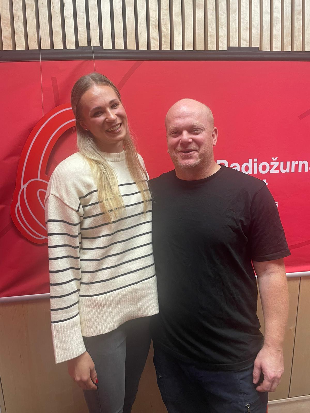 Tyčkařka Amálie Švábíková s moderátorem pořadu Na place Davidem Novotným | Foto: Lada Svítková, Český rozhlas