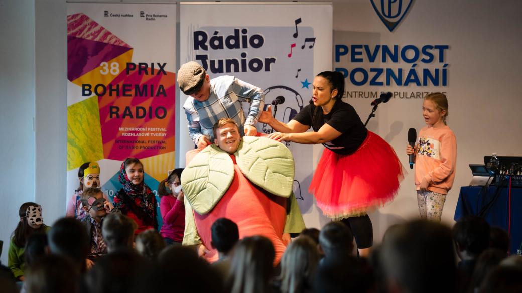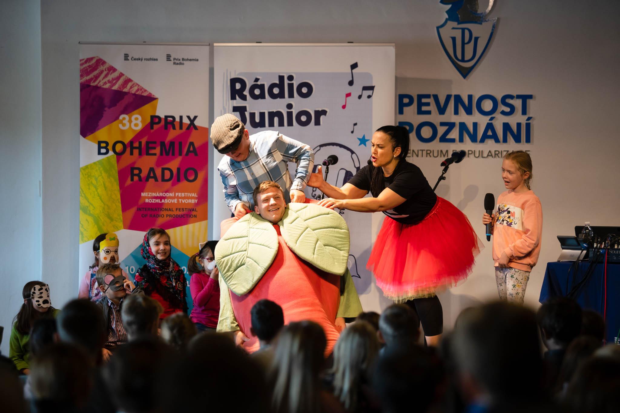 Učitel navlečený v kostýmu řepy, soutěže, písničky a rozesmáté děti. Tak to vypadalo při představení Rádia Junior na Prix Bohemia Radio 2022.