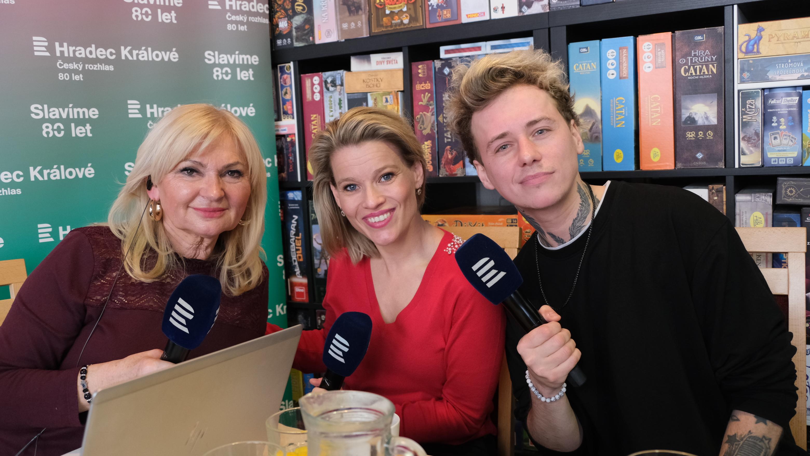 Lada Klokočníková, Michaela Štiková Gemrotová a Vojta Drahokoupil v rozhlasové kavárně | Foto: Milan Baják, Český rozhlas