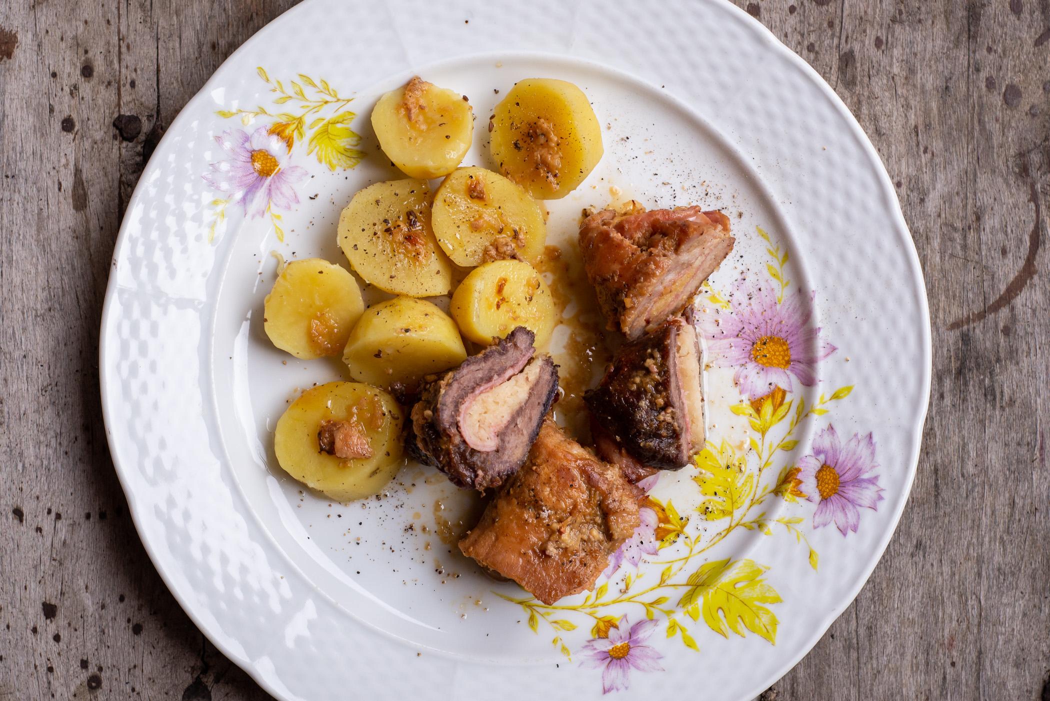 Tohle jídlo rozhodně není fádní. Můžete ho dělat z vepřového, ale také z hovězího masa. Po upečení je maso měkoučké, šťavnaté, a kombinace křenu, hořčice a šunky vás pěkně protáhne. Vařila Jana Vančurová z Poběžovic u Přelouče.