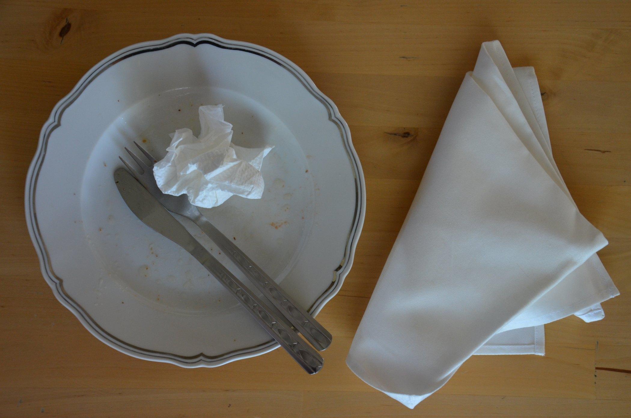 Po použití papírový ubrousek odložíme na talíř a látkový vedle něj | Foto: Jolana Nováková