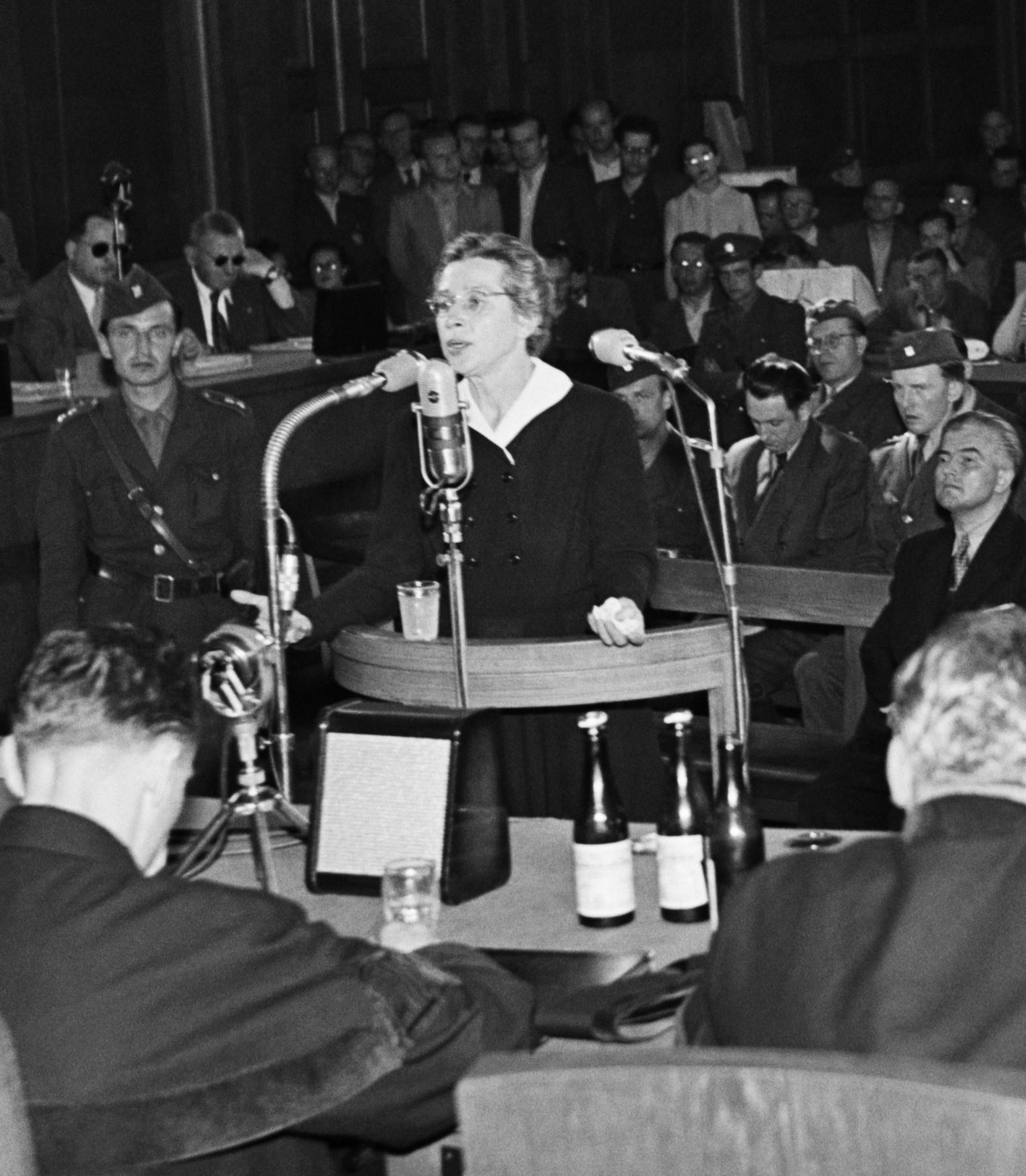 Poslední slova Milady Horákové během vykonstruovaného procesu. Rozsudek nad třinácti lidmi byl vynesený u Státního soudu na Pankráci | Foto: Rostislav Novák, ČTK