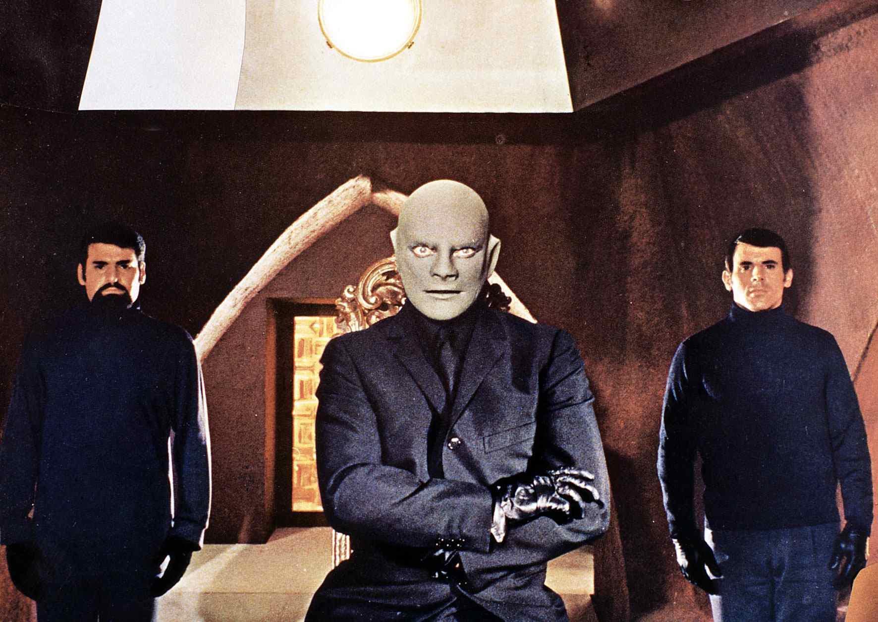 Jean Marais (uprostřed) v titulní roli filmové krimikomedie Fantomas kontra Scotland Yard (1966) | Profimedia