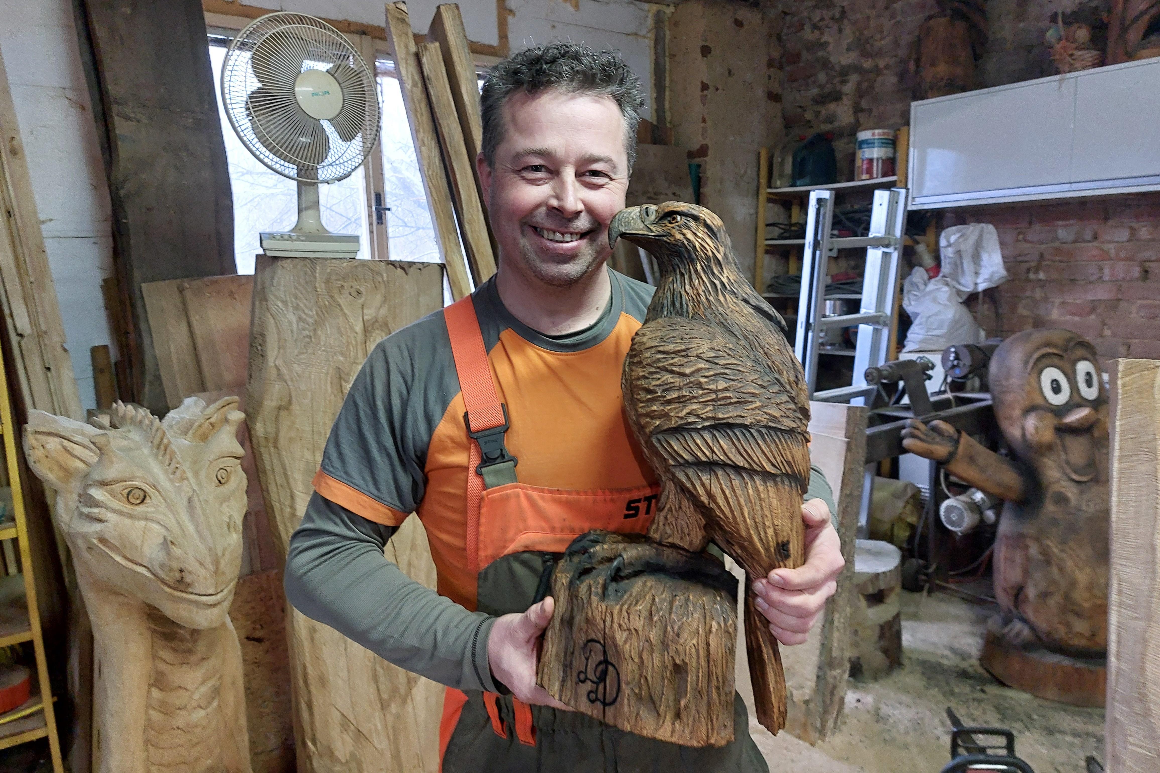 Když někdo něco dělá rád, je to na výsledku práce vidět. Petr Čtveráček býval, jak sám říká, kravaťákem, ale cítil, že to není ono. Teď opravuje starou chalupu v Rančířově, a ve svém království hned vedle koňské maštale tvoří dřevěné sochy.