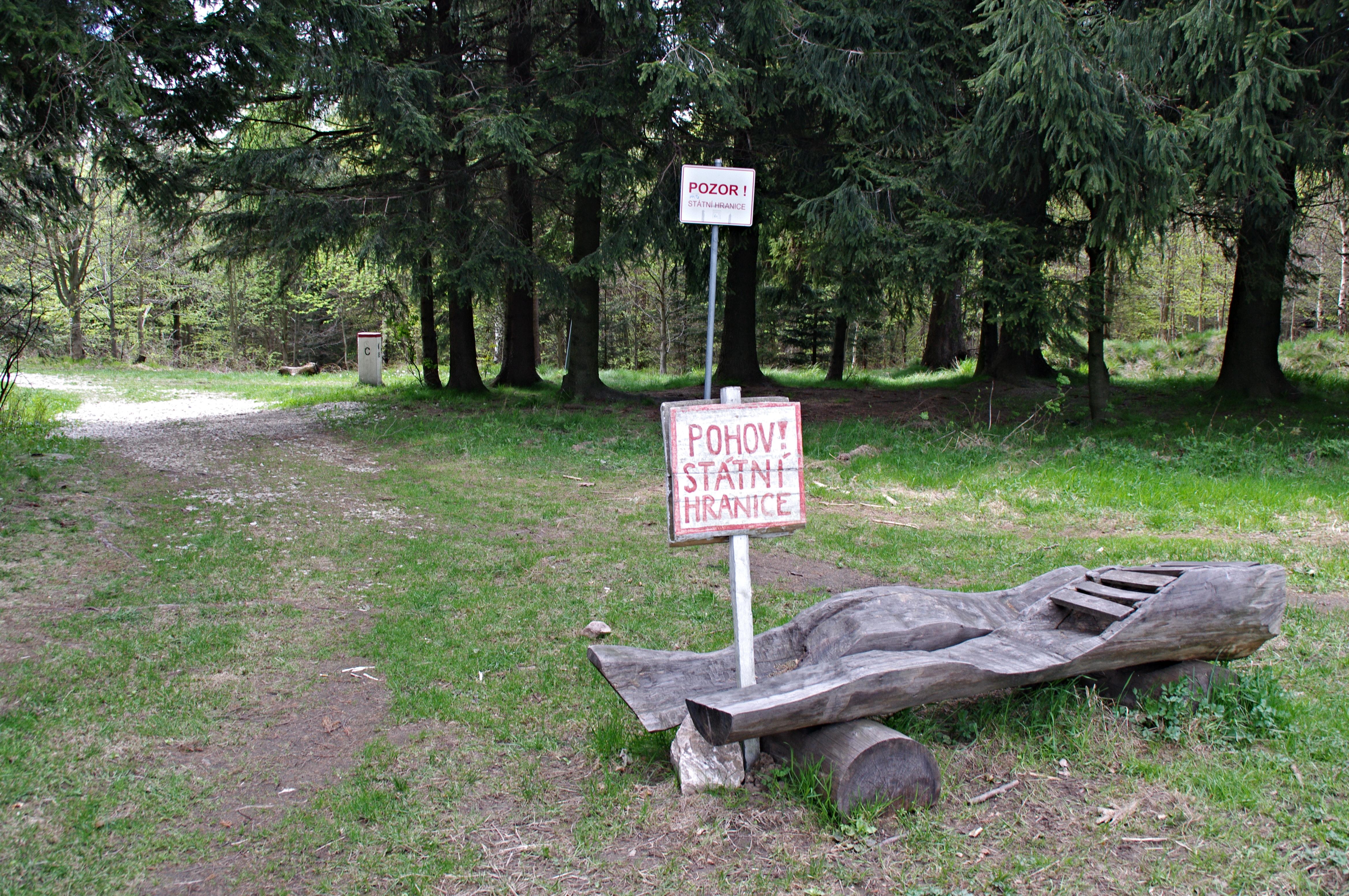 Turistický hraniční přechod na Hraničkách je dnes pojatý humorně. Kdysi se zde na Gieraltovském sedle čile pašovaly zakázané knihy | Foto: Miroslav Kobza, Český rozhlas