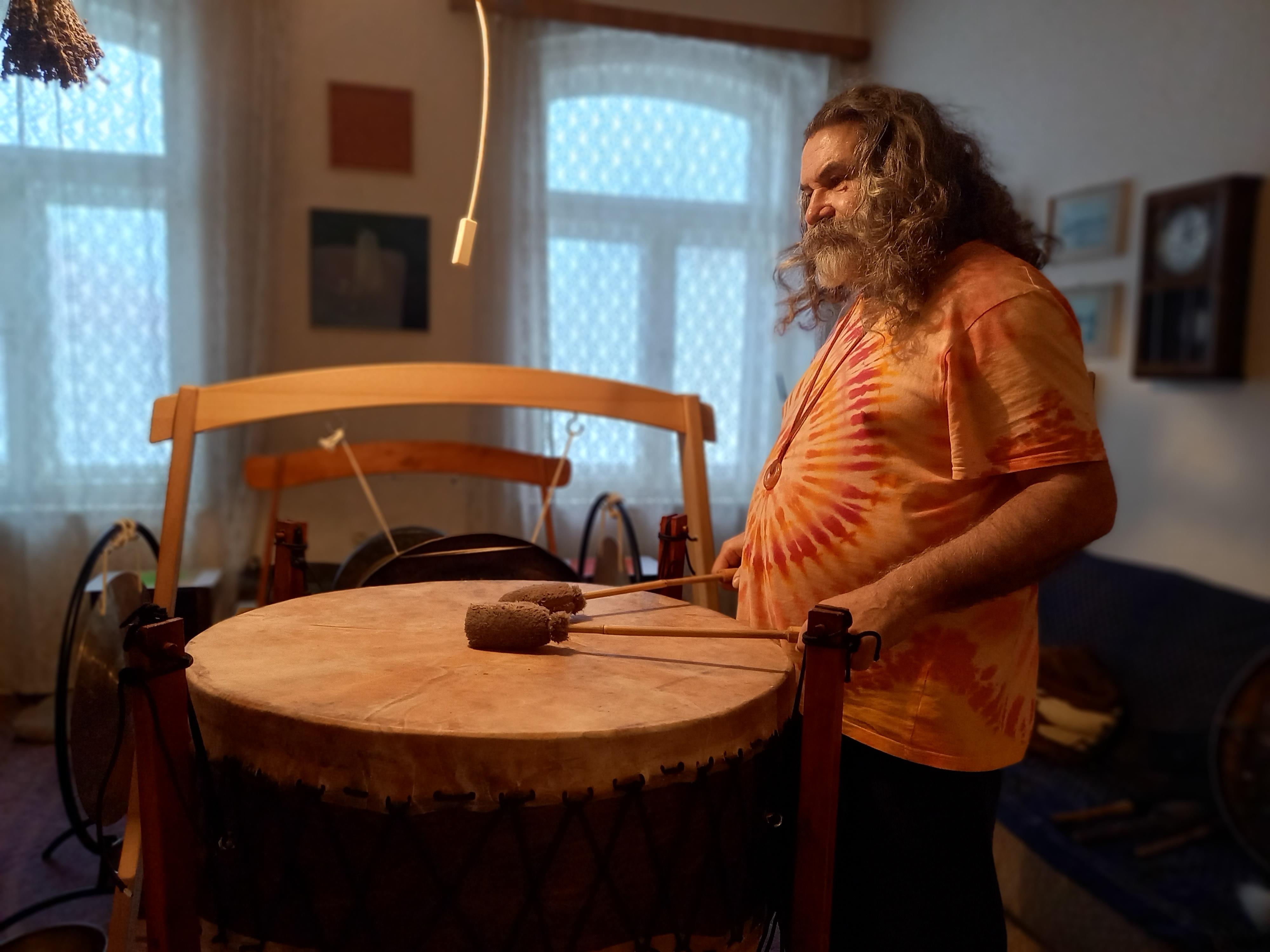 Říká se mu Šaman. Ve svém specifickém muzikoterapeutickém přístupu pracuje s lidským hlasem, ale také spoustou etnických, lidových a prastarých nástrojů.
