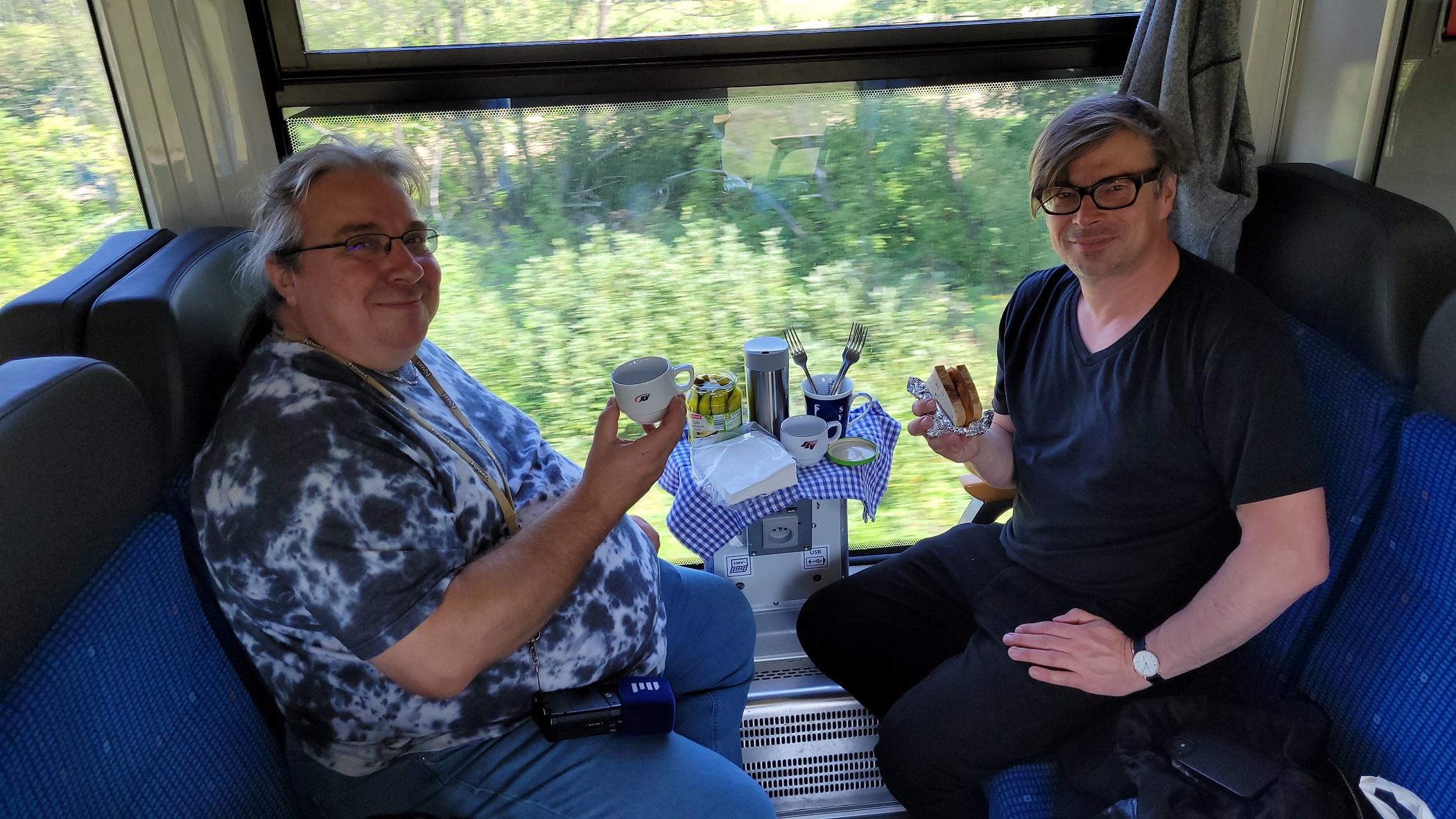 Když se na kolejích sejdou tři milovníci železnice, může i z běžné projížďky lokálkou vzniknout zajímavá cesta plná vyprávění, příhod a vzpomínek. A to je případ setkání nejznámějšího hostinského na kolech jídelních vozů Pavla Peterky, spisovatele a autora komiksu a filmu o nejslavnějším železničáři Jesenicka Aloisi Nebelovi Jaroslava Rudiše a znalce jesenické krajiny a našeho kolegy Mirka Kobzy.