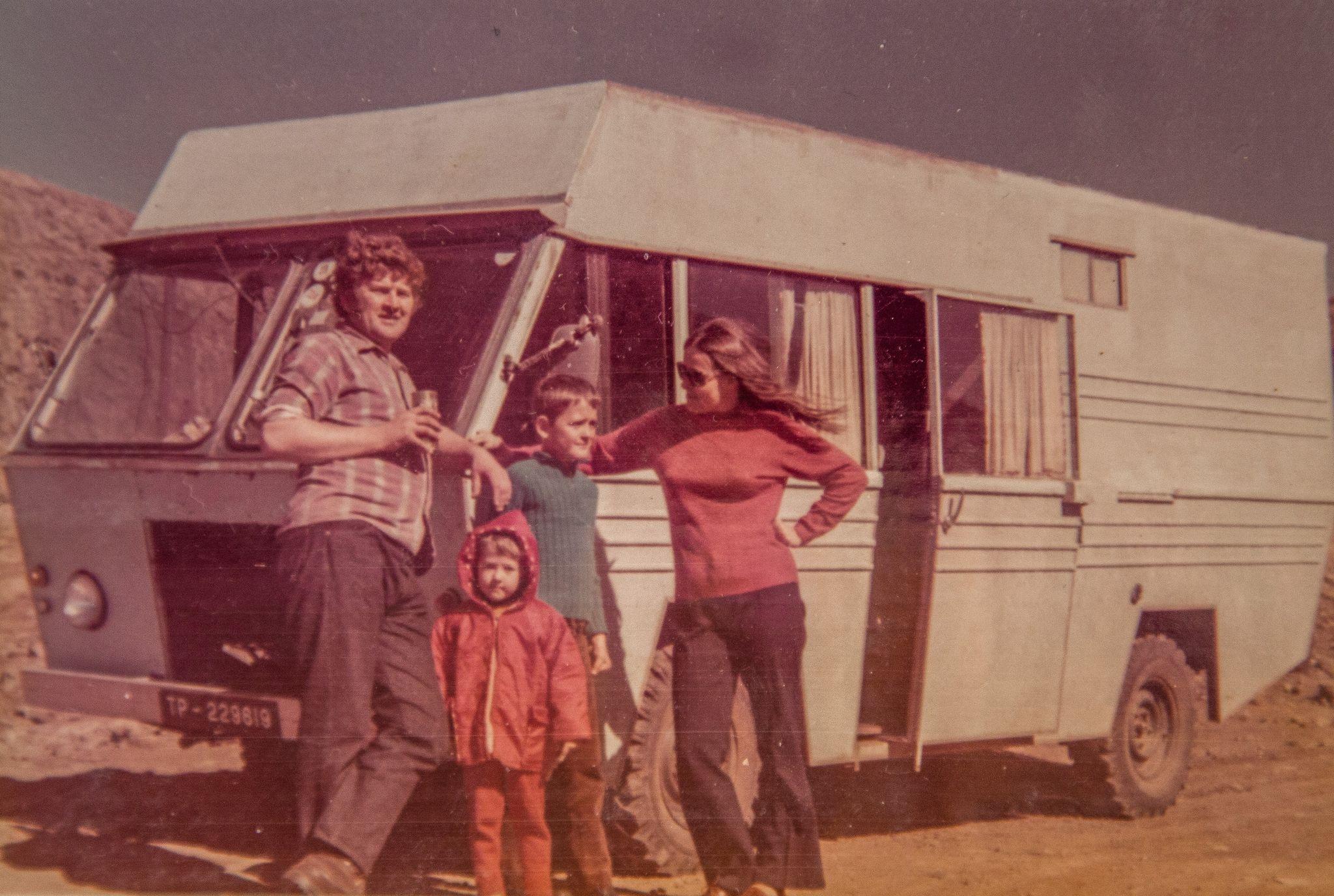 Rodina Pechoušova před dodávkou, kterou si vlastnoručně vyrobili pro své cestování | archiv Mileny Pechoušové