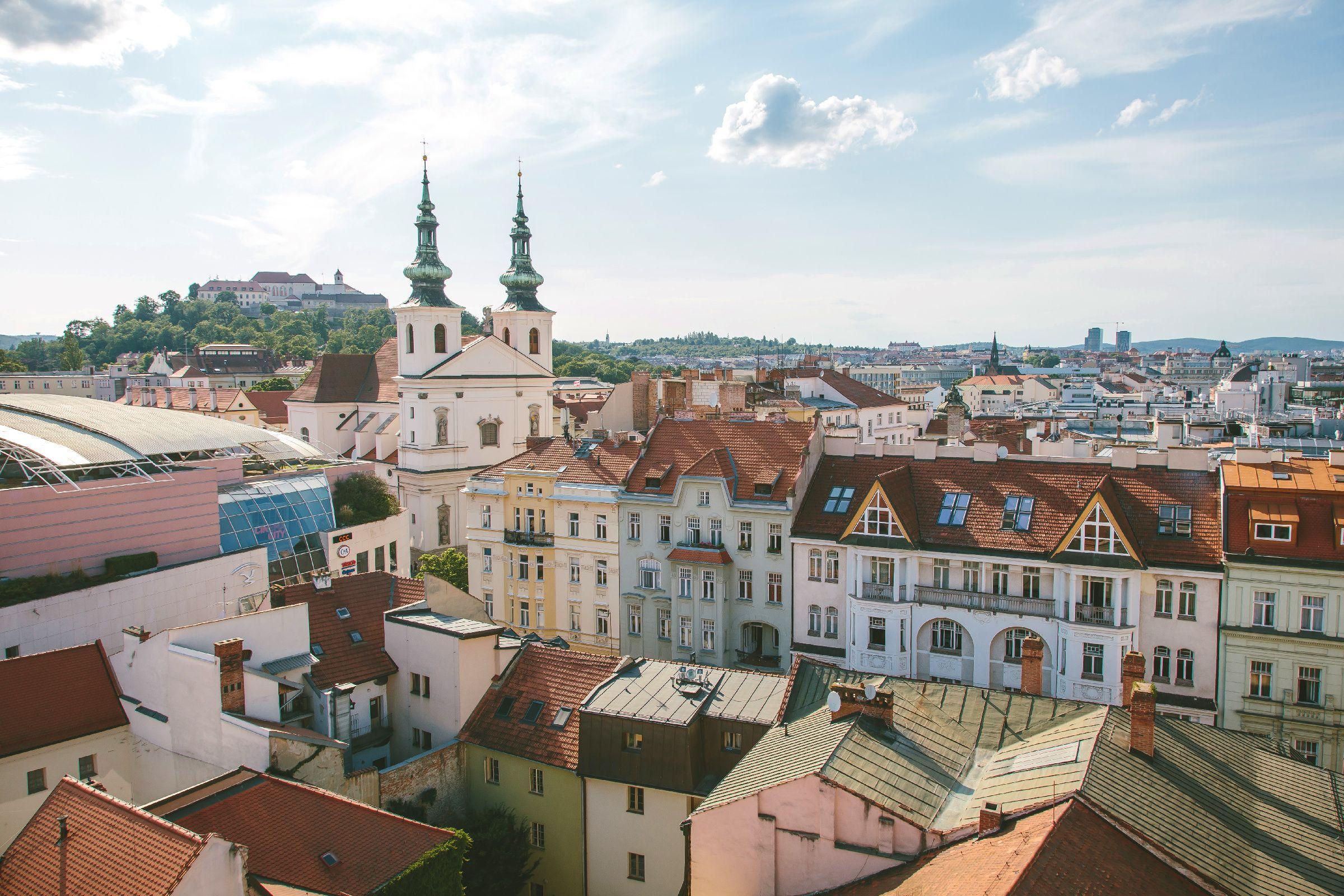 Pohled z věže Staré radnice směrem k pozdně gotickému kostelu sv. Jakuba, v pozadí hrad Špilberk | Foto: Jana Volková, Český rozhlas
