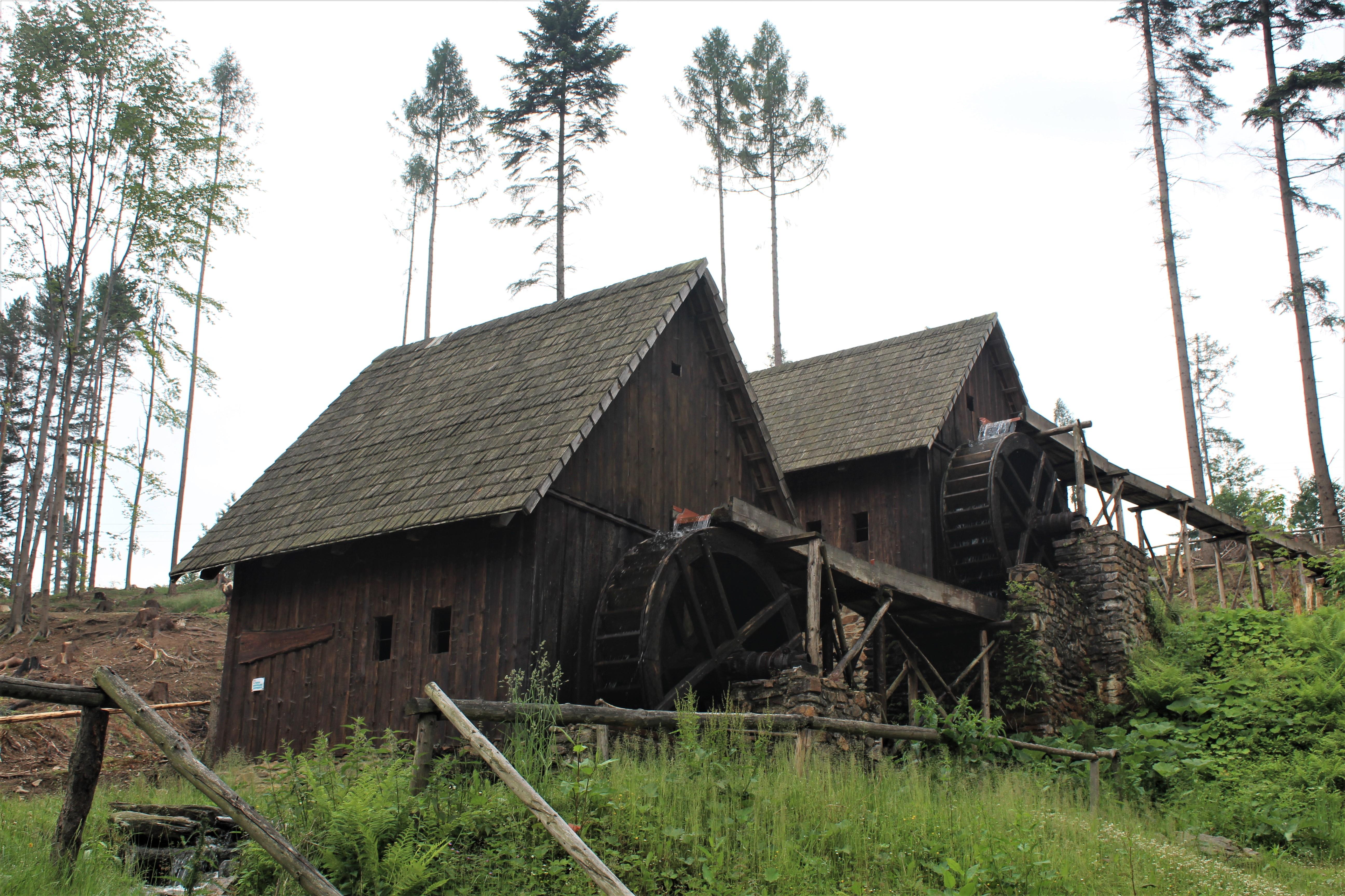 Ve Zlatých horách najdeme repliky středověkých zlatorudných mlýnů, jejichž výkon se používal k drcení rudy.