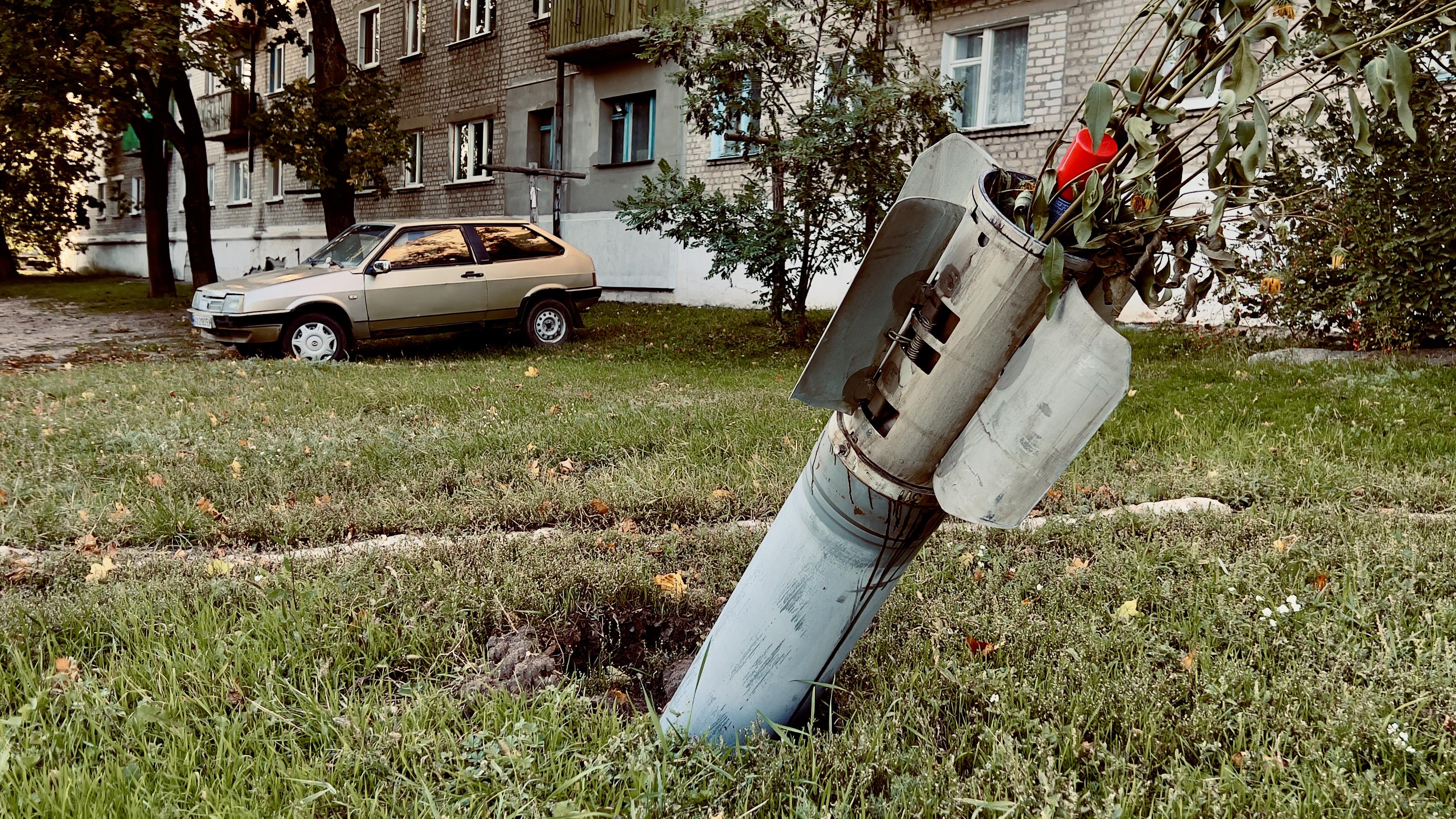Kupjansk, Ukrajina; Nevybuchlá střela u bytového domu ve městě Kupjansk, kde stále probíhají boje s ruskými okupanty (z 25. září 2022) | Fotobanka Profimedia