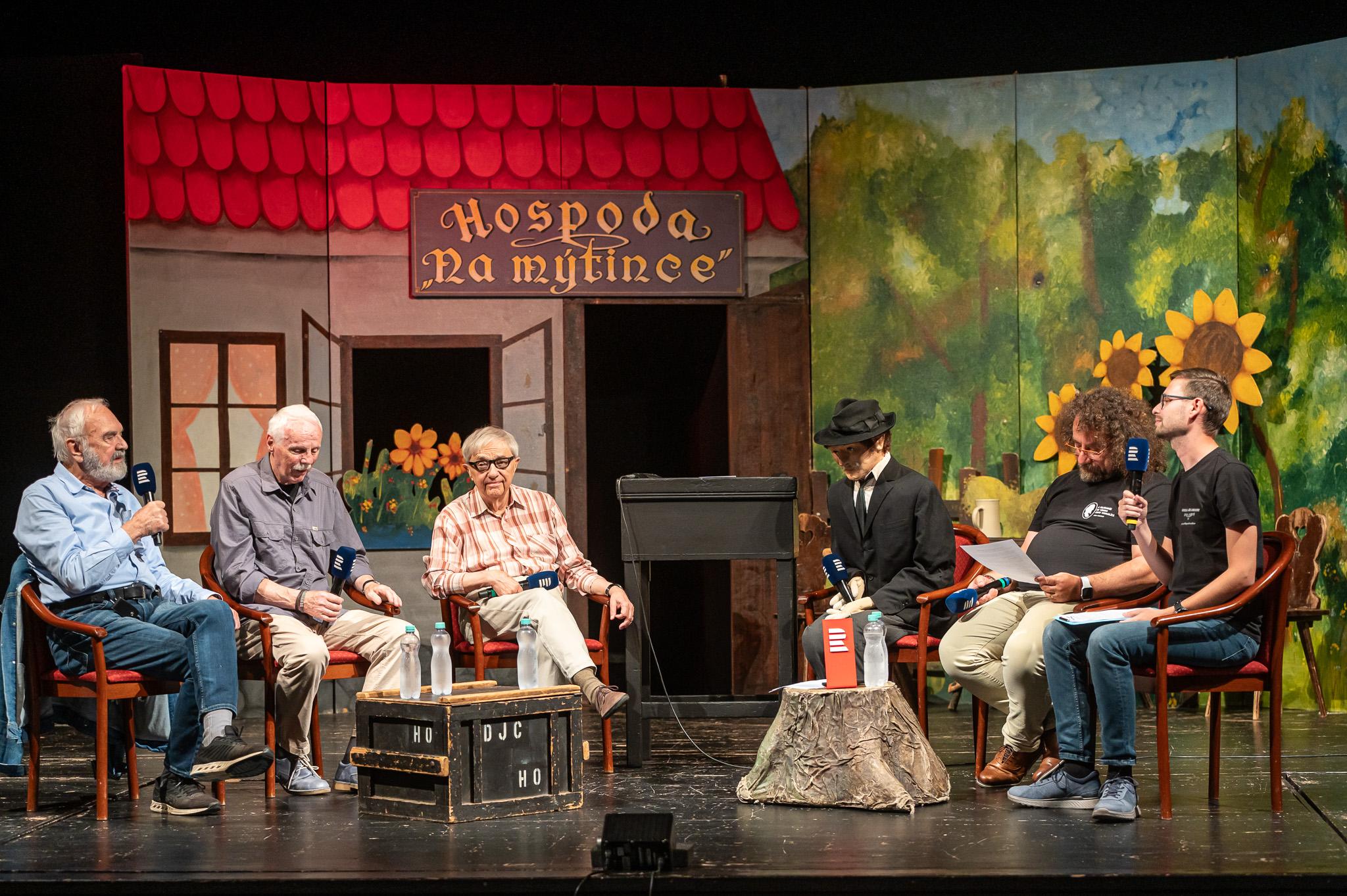 Zdeněk Svěrák, Petr Brukner a Miloň Čepelka s Vladimírem Krocem a Tomášem Malečkem ve speciálním vysílání | Foto: Milan Vobecký, Český rozhlas