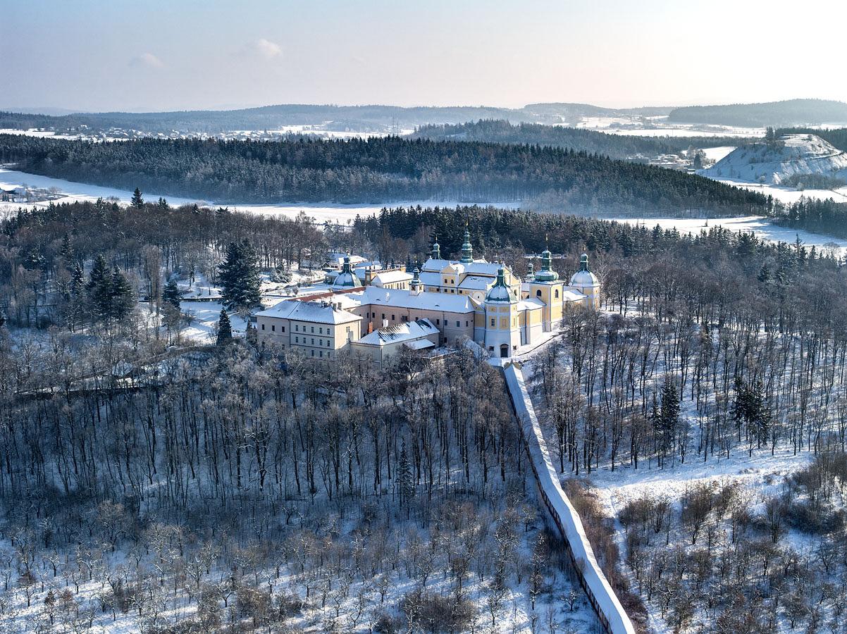 Letecký pohled na zasněženou Svatou Horu | Foto: Jiří Jiroušek