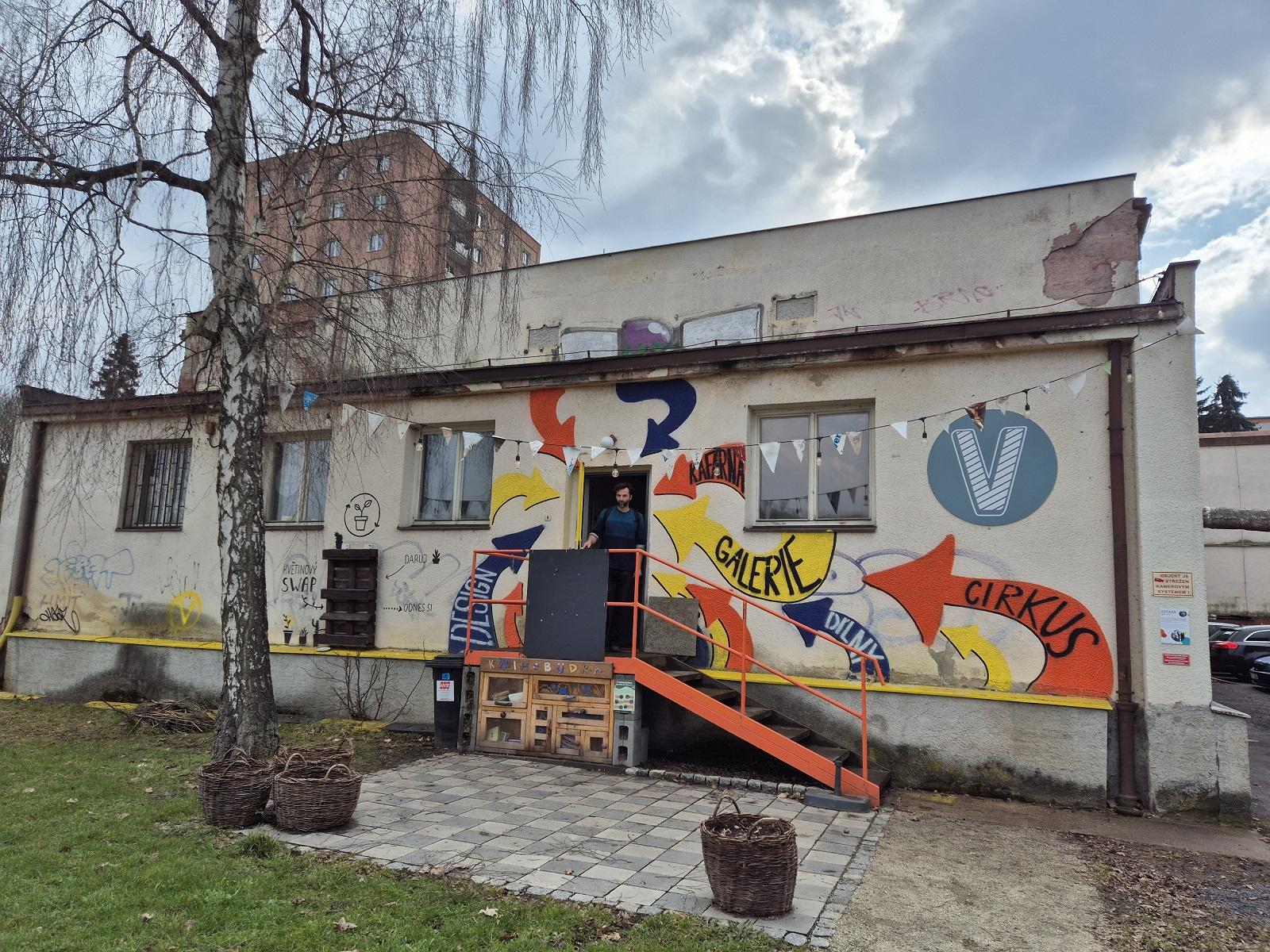 Budova bývalého karlovarského výměníku, který se nachází poblíž Dolního nádraží, působí na první pohled poněkud nevábně. Zvenčí připomíná industriální dědictví druhé poloviny minulého století. Šedý železobetonový skelet má tvar krabice. Dojem z místa však zpříjemňují barevné šipky s nápisy jako Cirkus, Galerie, Kavárna, které dávají tušit, že výměník už neslouží původnímu účelu.