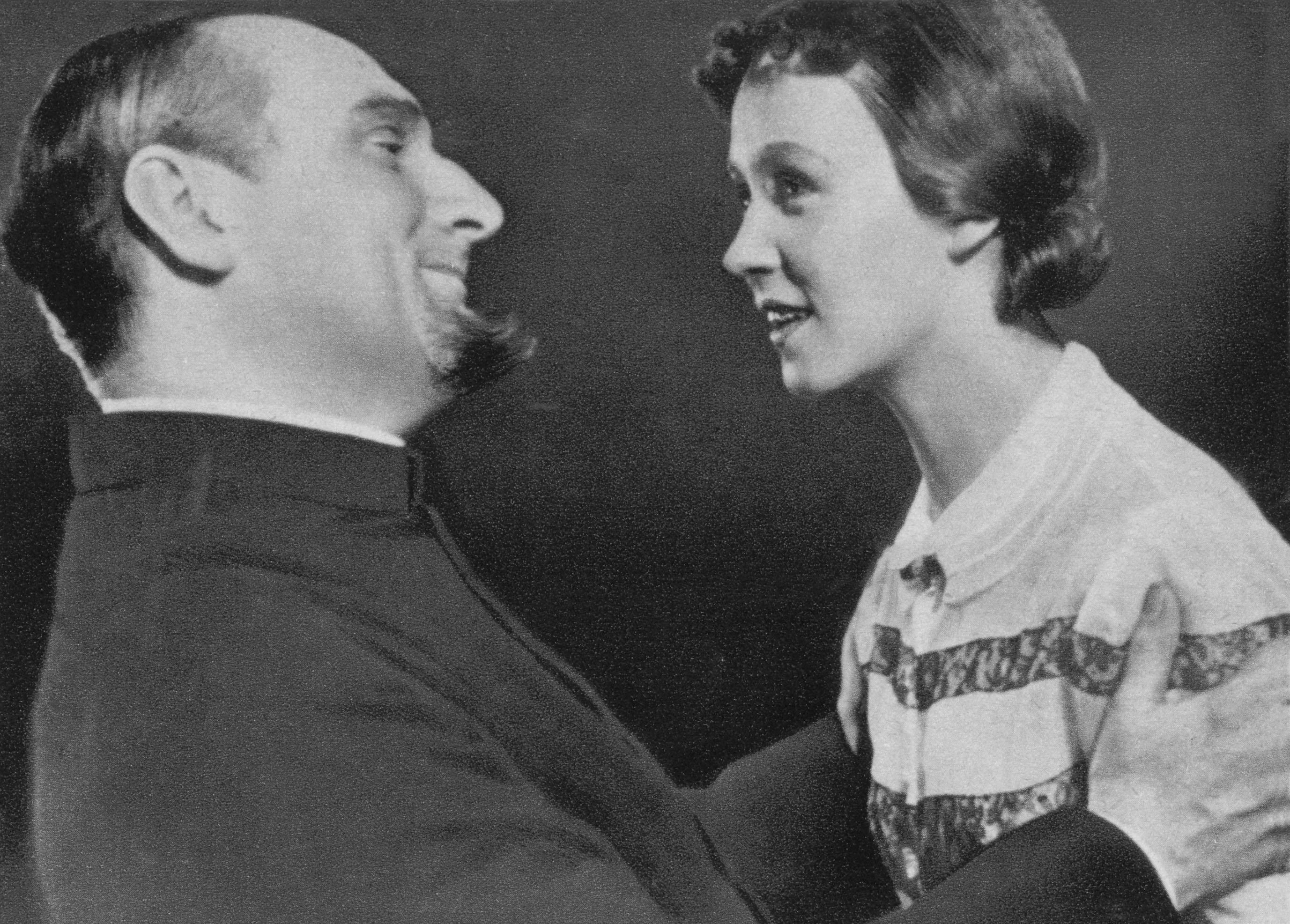 Nataša Gollová jako Lea a Jiří Plachý jako biskup Bridgemorth v Shawově hře Ženění a vdávání na scéně Městského divadla na Královských Vinohradech v Praze v roce 1938 | ČTK