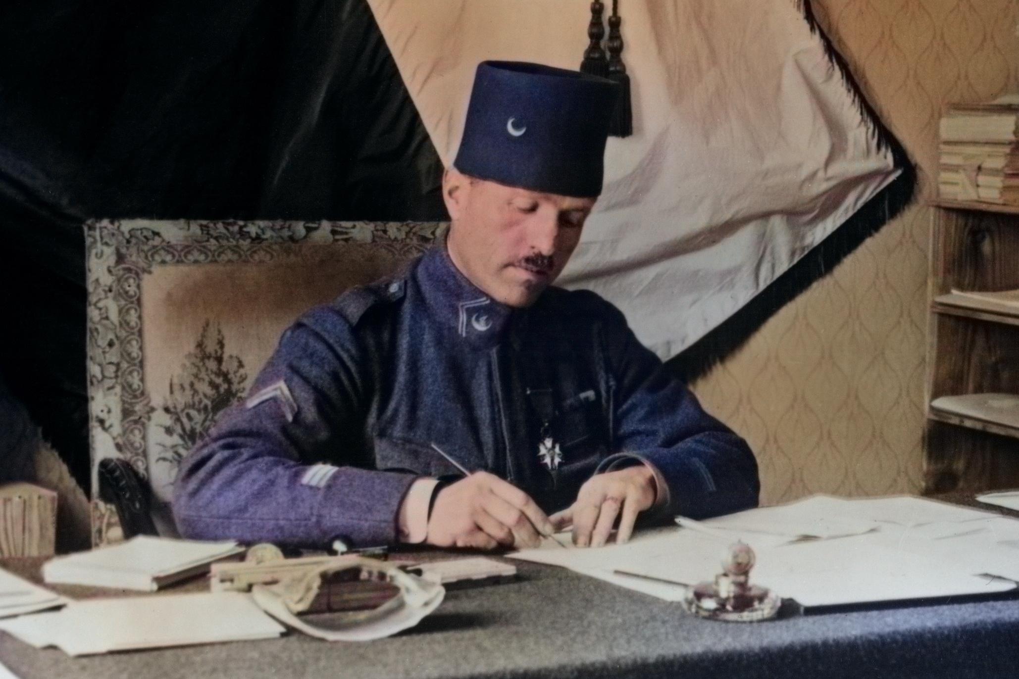 Josef Šnejdárek ještě jako kapitán ve své kanceláři v Cognacu (Francie, digitálně kolorováno) | ČTK