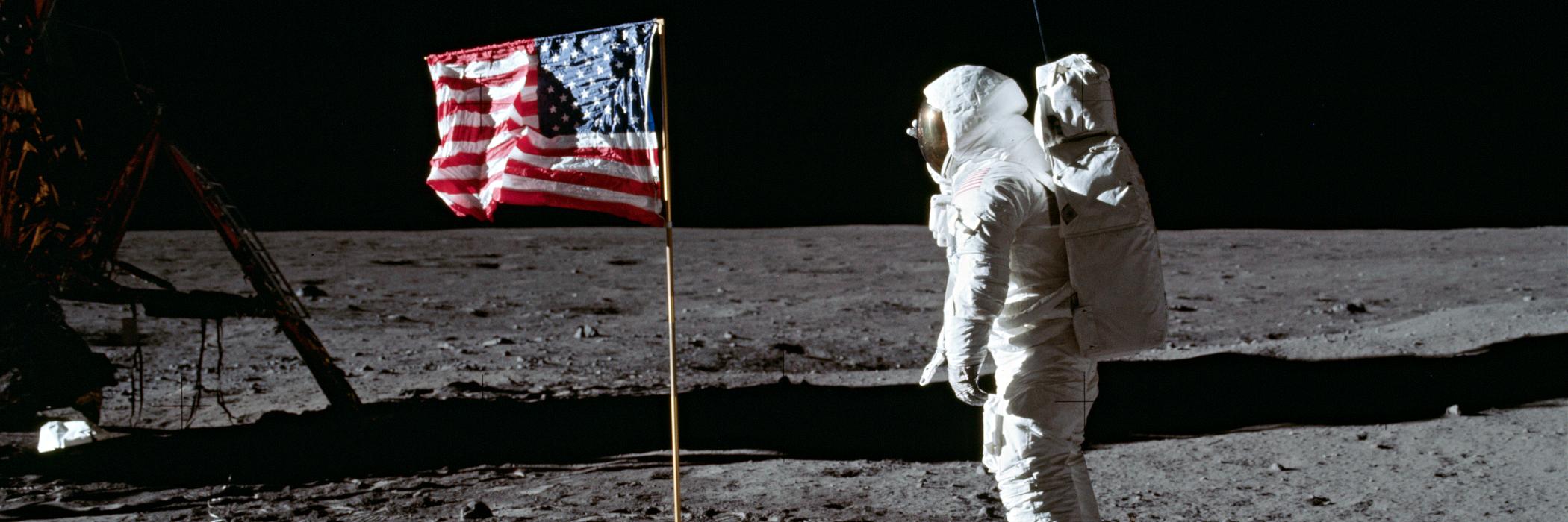 Buzz Aldrin na Měsíci a vlajka USA | NASA