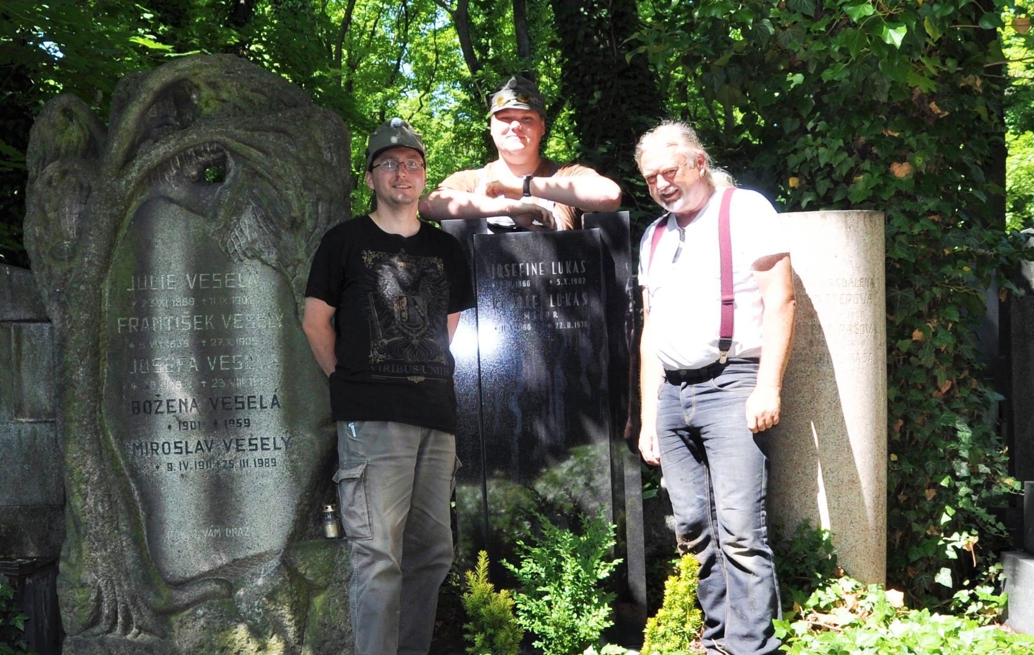 Členové spolku Jednadevadesátníci, který se hlásí k odkazu 91. pěšího pluku z Českých Budějovic, u hrobu Rudolfa Lukase | Foto: archiv Jana Ciglbauera