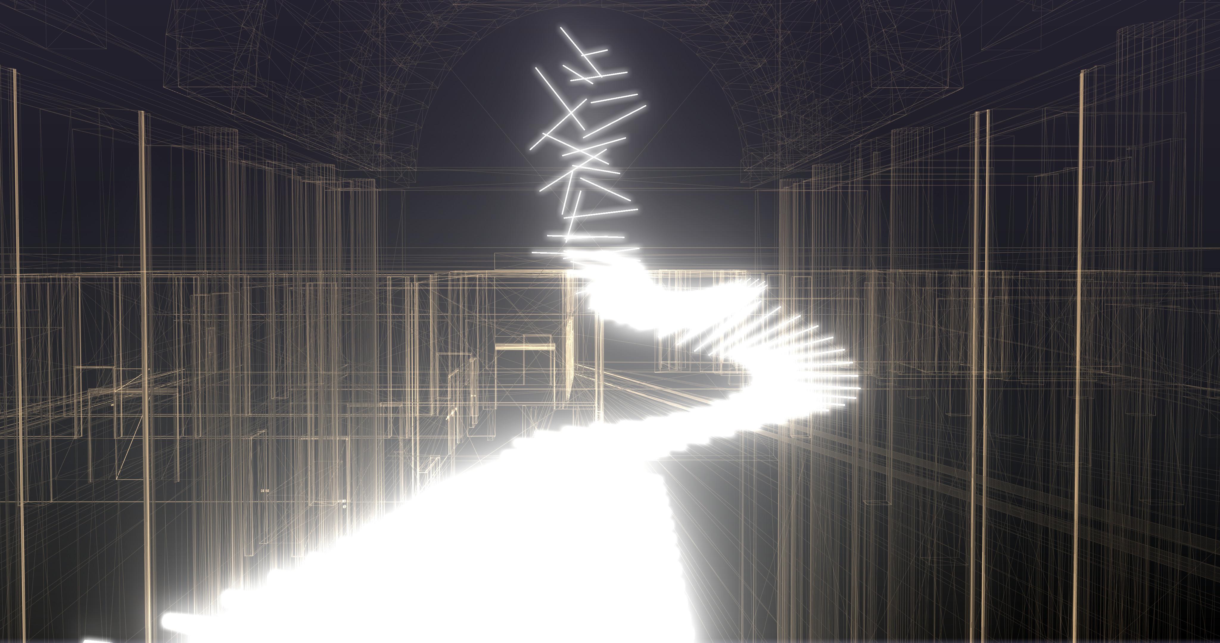 Dva protilehlé proudy světla propojují prostor galerie Signal Space.