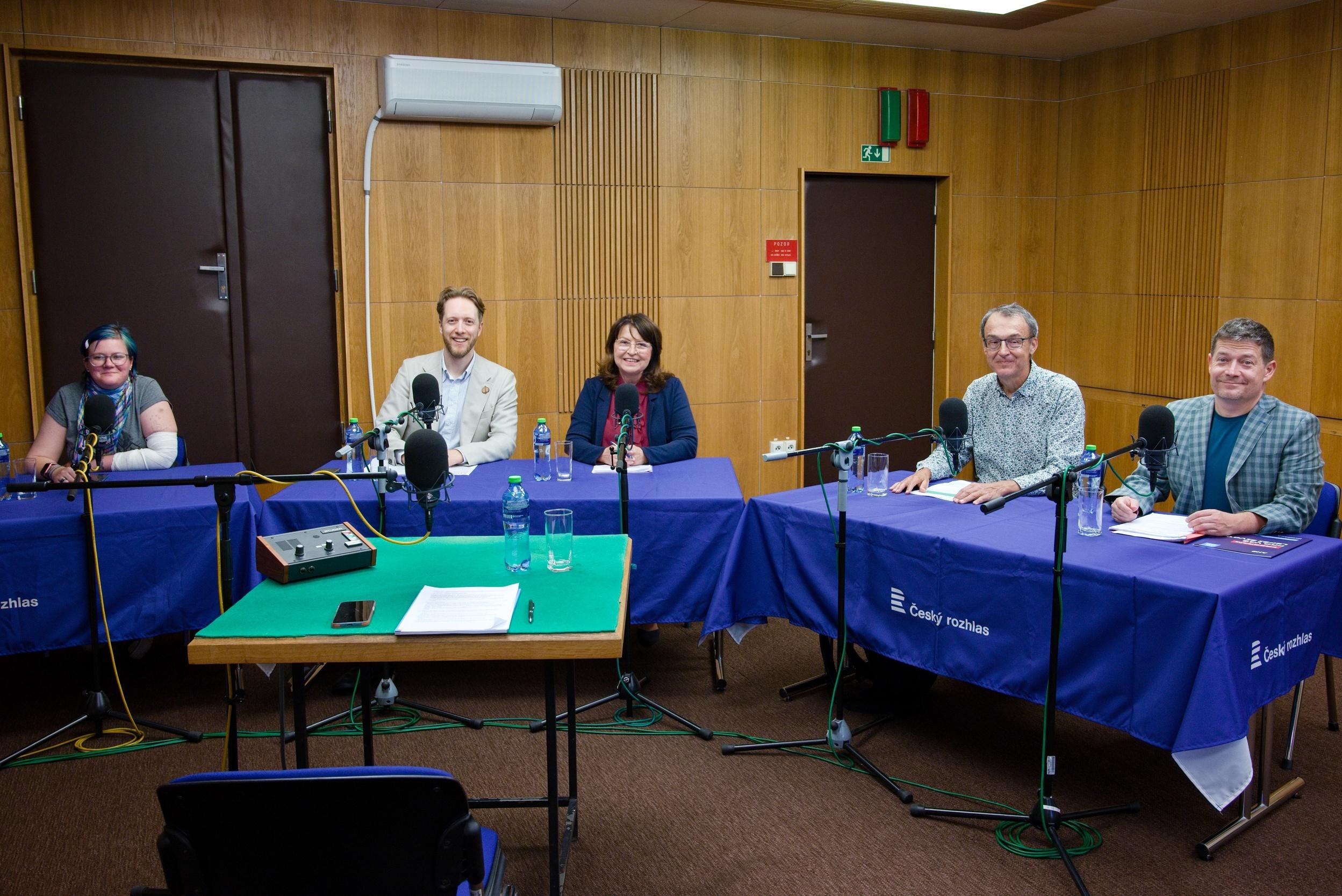 Zleva: Michaela Nedory (Hnutí Kruh), Václav Vislous (Česká pirátská strana), Olga Hromasová (STAN), Václav Srb (Koruna Česká (monarchistická strana Čech, Moravy a Slezska)), Patrik Nacher (ANO 2011) | Foto: Klára Škodová, Český rozhlas