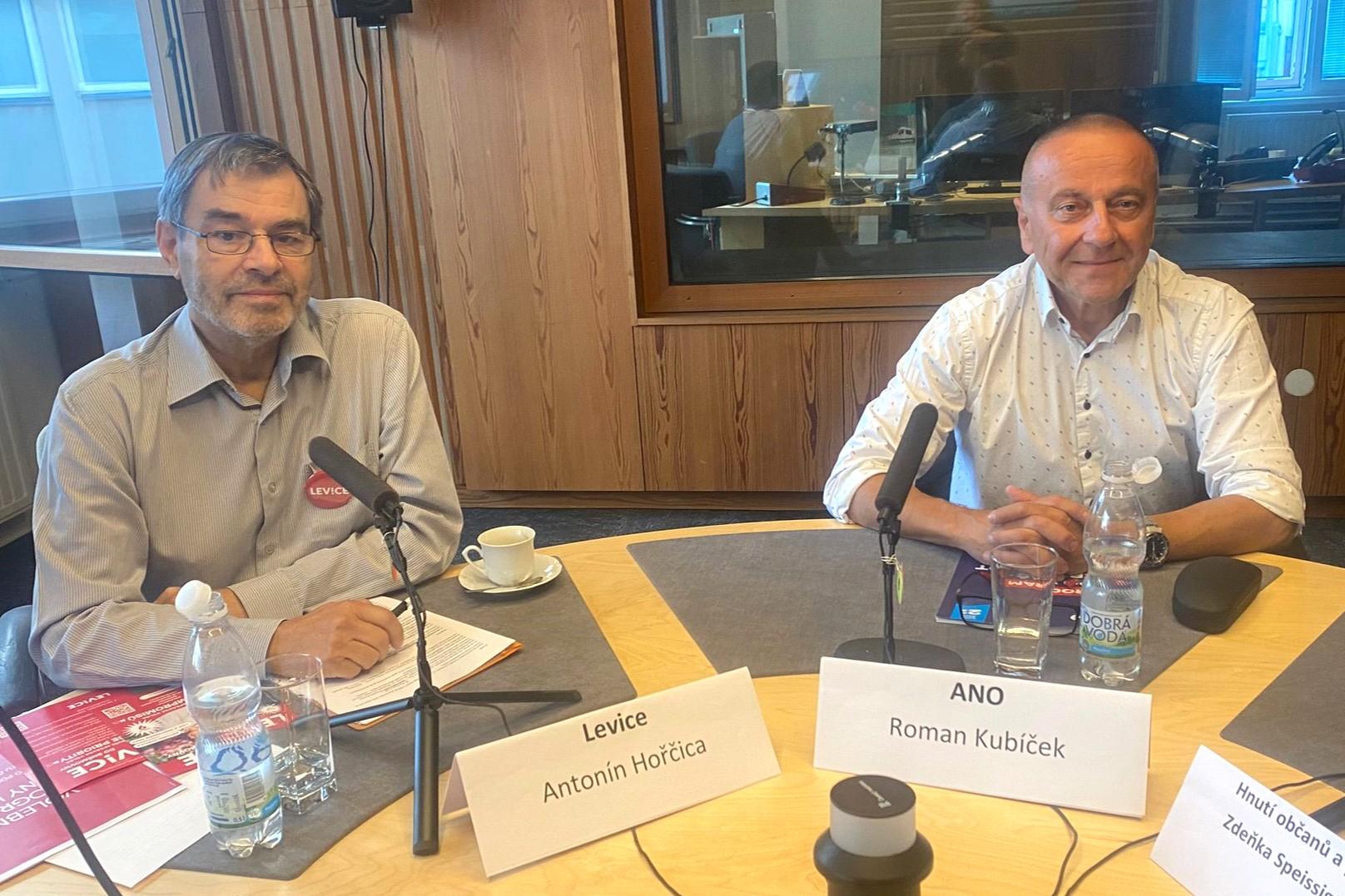 Do debaty moderátora Matěje Vodičky přišli diskutovat: Antonín Hořčica (Levice) a Roman Kubíček (ANO).