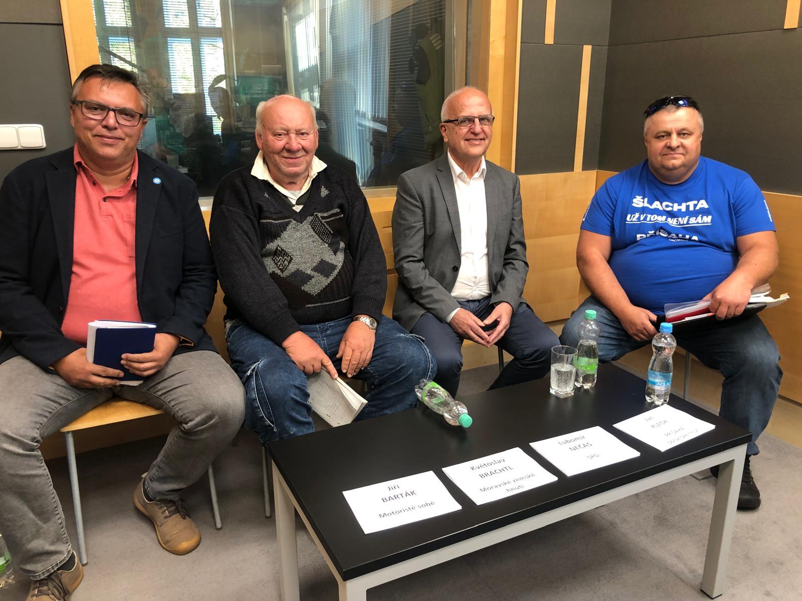 Debata, které se zúčastnili: Jiří Barták (Motoristé sobě), Květoslav Brachtl (Moravské zemské hnutí), Lubomír Nečas (SPD) a Jan Klech (PŘÍSAHA občanské hnutí).