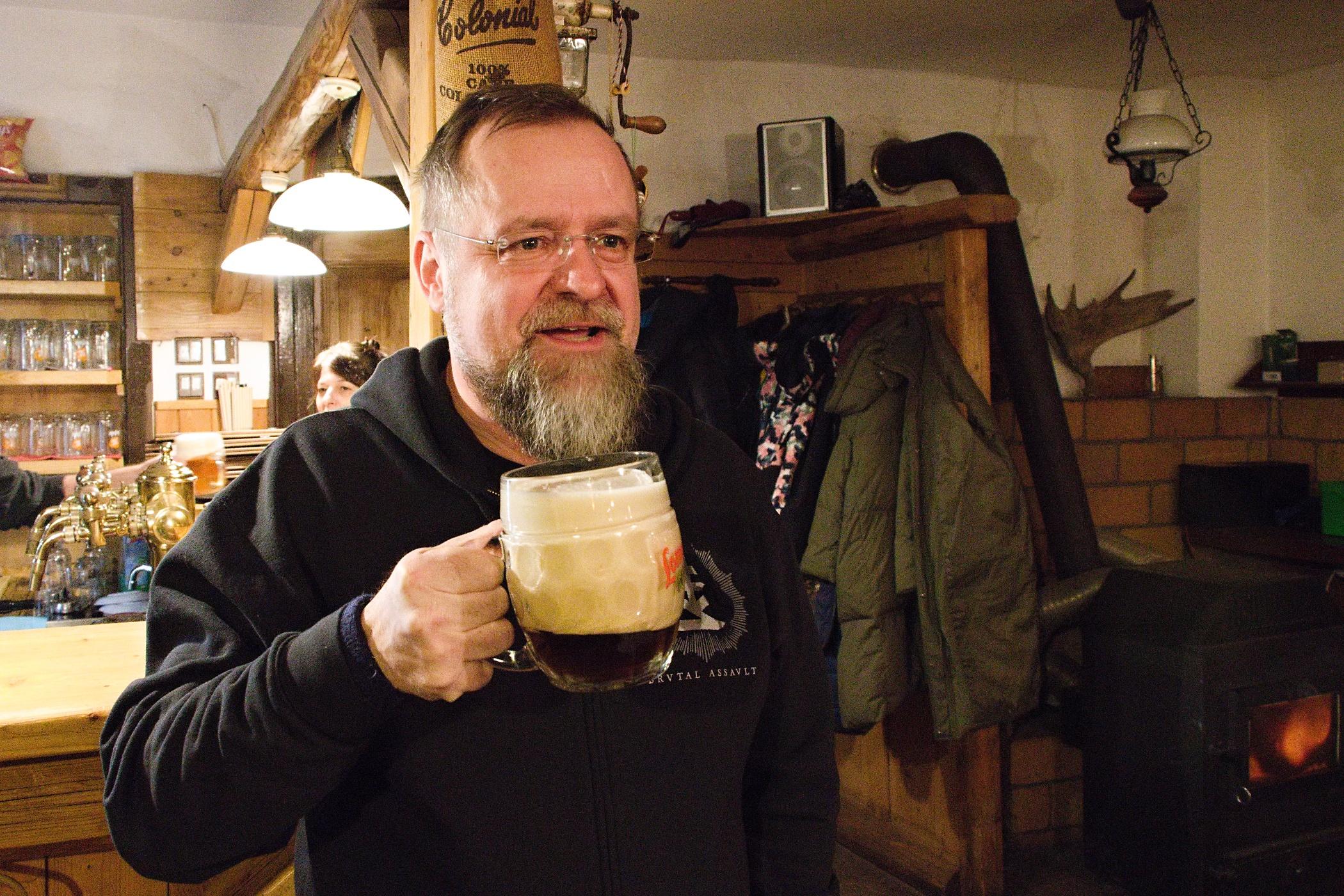 Sládek Václav Omáčka ochutnává právě naražené pivo, uvařené podle staletého receptu | Foto: Jaroslav Hoření, Český rozhlas