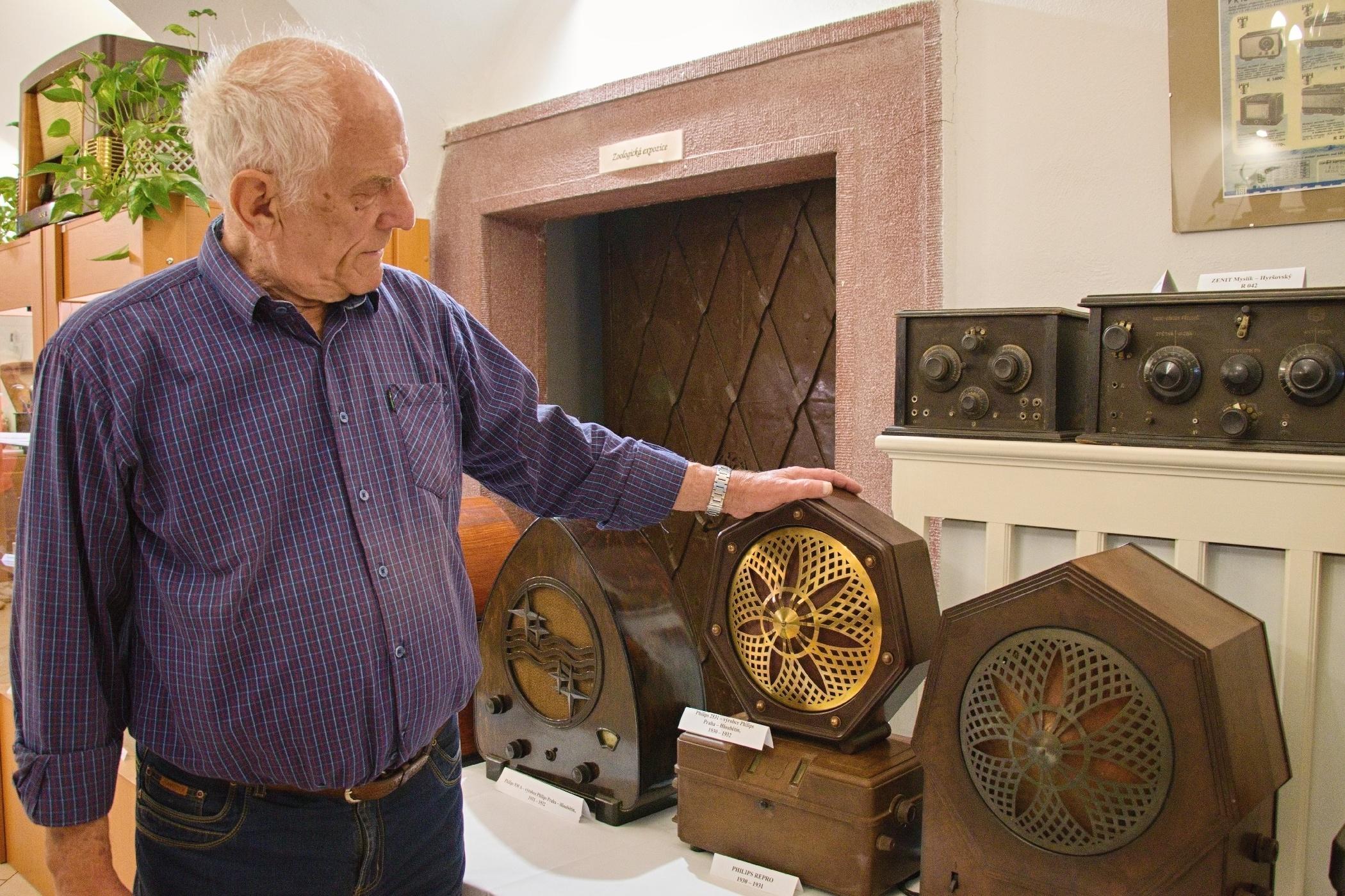 Pan Jan Drahoňovký u části své sbírky historických radiopřijímačů, které vystavuje muzeum v Lomnici nad Popelkou | Foto: Jaroslav Hoření, Český rozhlas