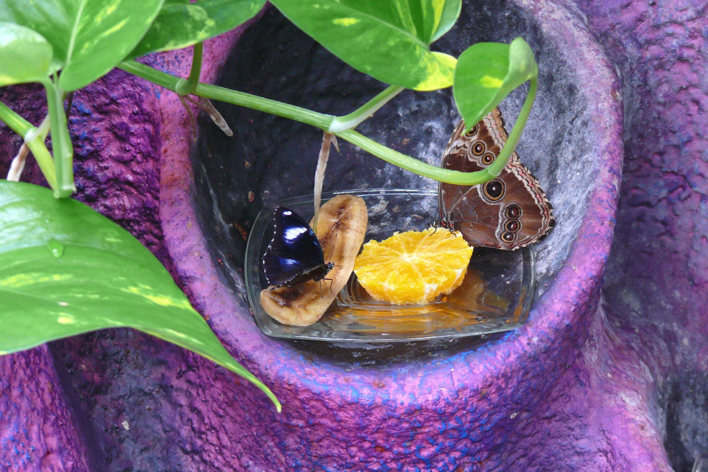 Hypolimnas bolina a morpho peleides si pochutnávají na pomeranči a na banánu | Foto: Filip Černý, Český rozhlas