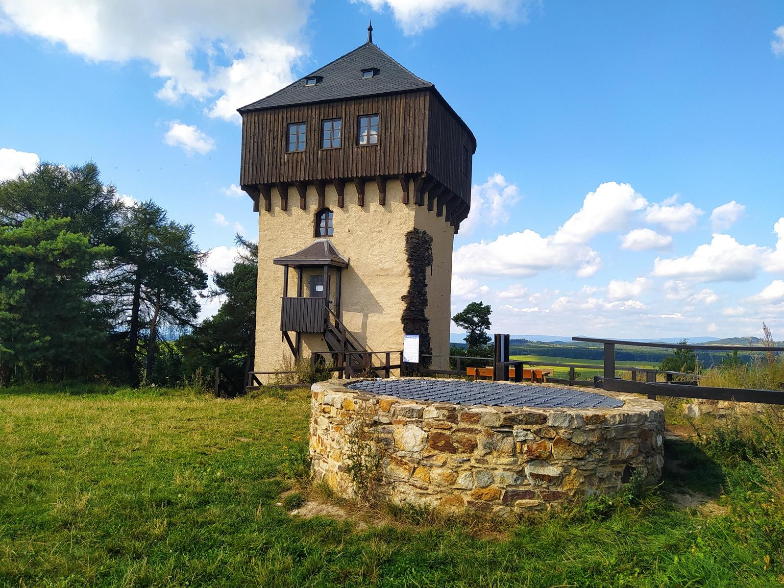 Karlovarská věž společně se studnou, která se dříve nacházela v interiéru hradu | Foto: Kateřina Dobrovolná, Český rozhlas