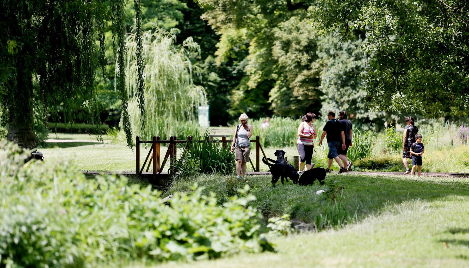 V parku, oáze klidu, se můžete dívat do zeleně nebo si číst Balabánův Román pro pitomce