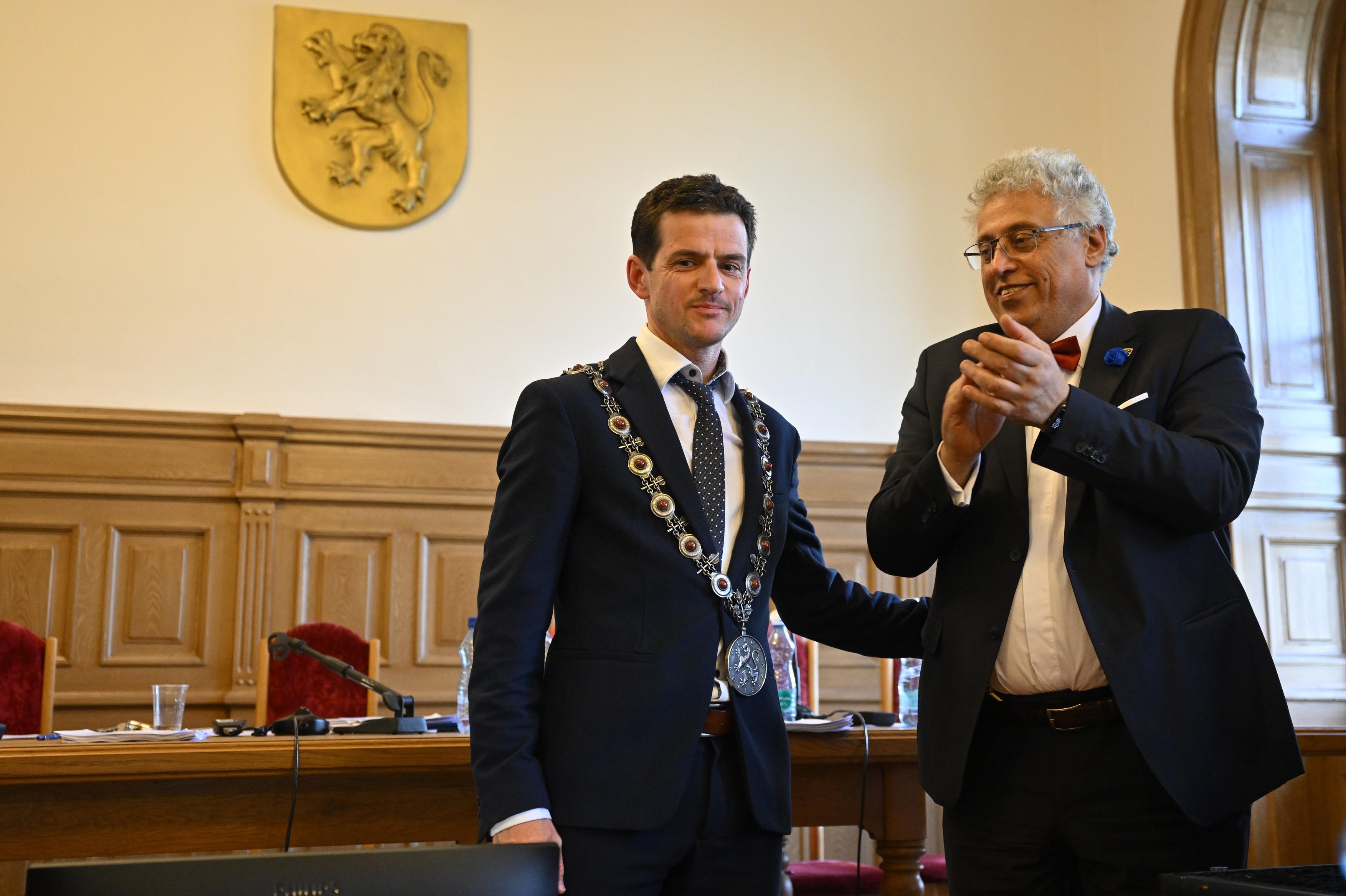 Novým primátorem se stal dosavadní první náměstek Jiří Bouška z koalice ANO a Volba pro Mladou Boleslav. Vpravo jeho předchůdce Raduan Nwelati z ODS. | ČTK
