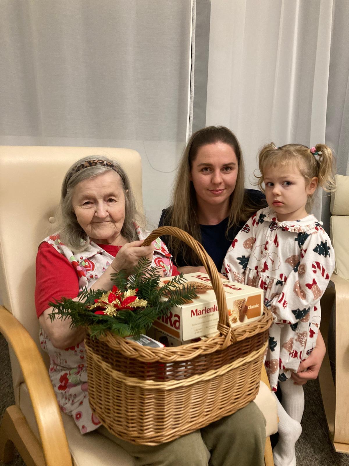 Paní Erna z ostravského Domova Přístav se svými Ježíškovými vnoučaty Lucií a Anežkou | Foto: Marta Pilařová, Český rozhlas
