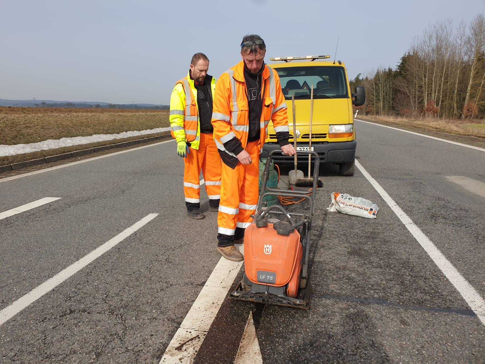 Oprava výtluků u Nové Včelnice | Foto: Lucie Suchánková Hochmanová, Český rozhlas