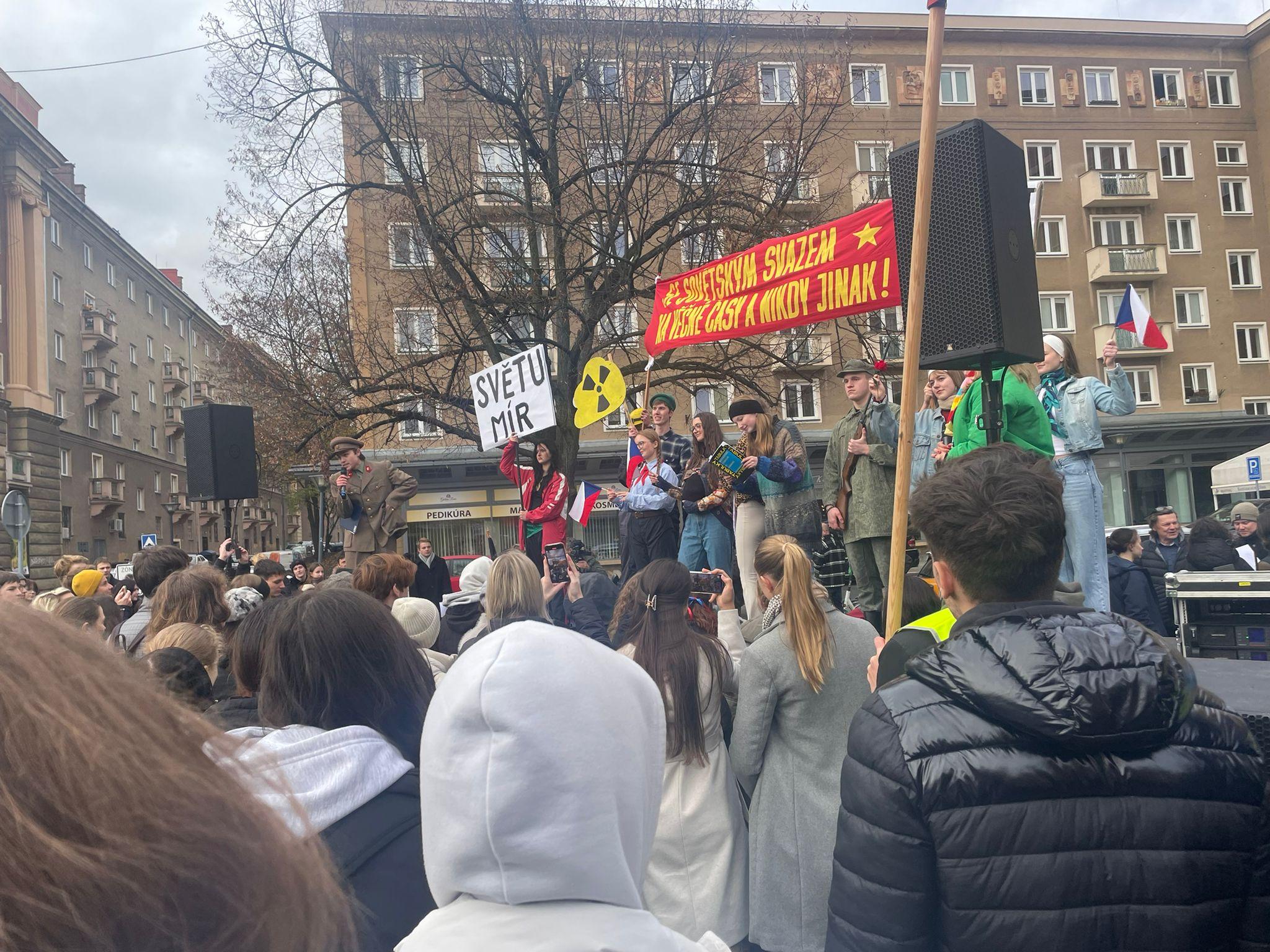 Studenti si v Ostravě-Porubě poměrně netypicky připomněli události 17. listopadu | Foto: Natálie Flajžíková, Český rozhlas