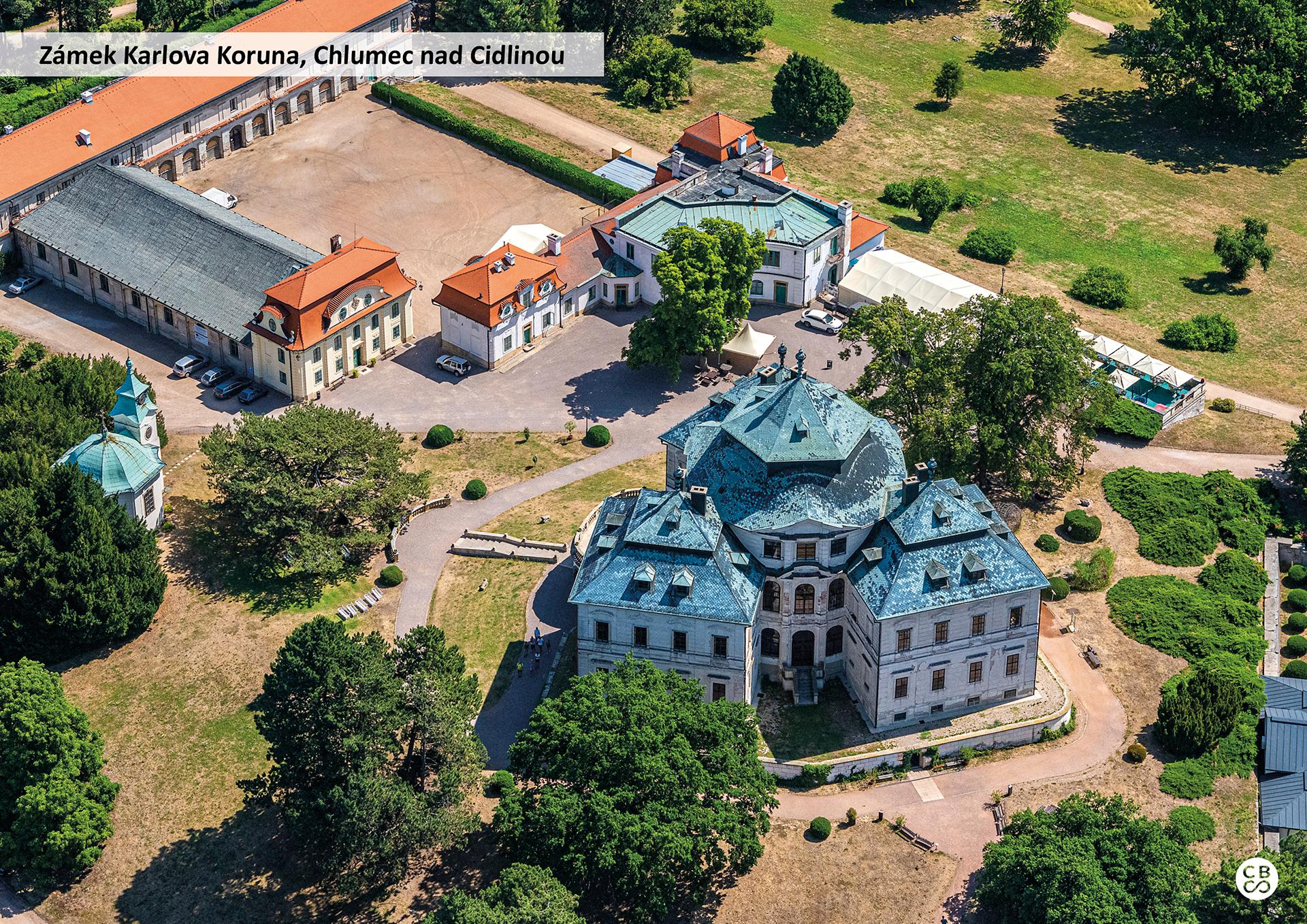 Karlova Koruna je zámek patřící k nejvýznamnějším barokním stavbám v Česku. Stojí na návrší Chlumec v západní části města Chlumec nad Cidlinou | Společnost CBS Nakladatelství s. r. o.