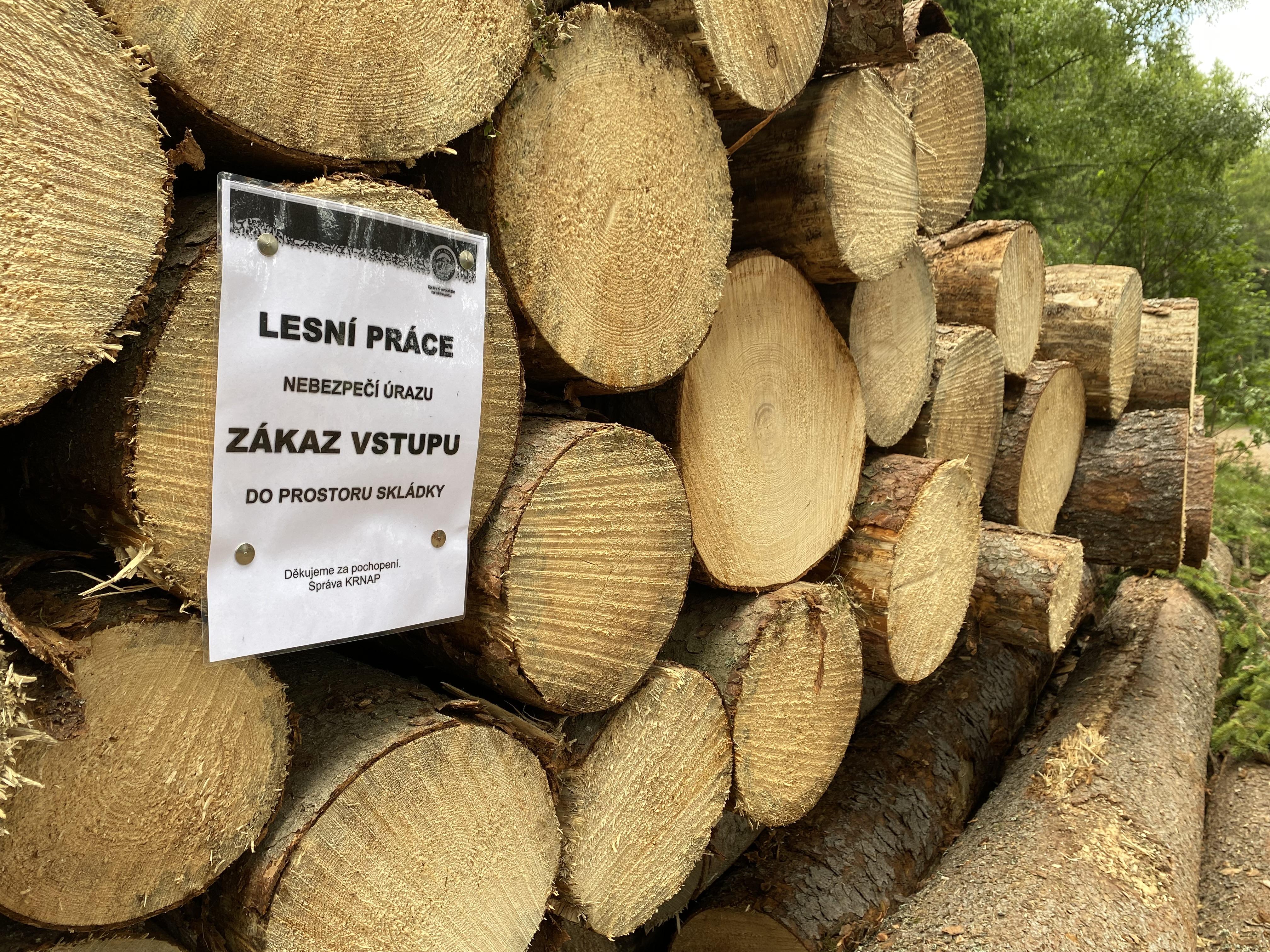 Složené kmeny stromů na hromadě nejsou dětské prolézačky. Tohle vzkazují krkonošští lesníci rodičům. Objevují se totiž neustále případy, kdy děti mohou přijít lehce k úrazu. Skládky dřeva v Krkonoších jsou sice obehnané červenobílou páskou a označeny cedulí Vstup zakázán, mnozí to ale nerespektují.