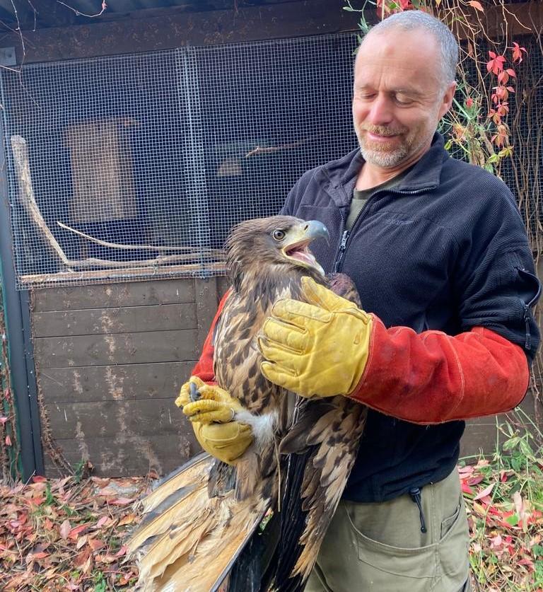 Šéf záchranné stanice v Třeboni Jan Nový a mládě orla mořského | Foto: Jitka Cibulová Vokatá, Český rozhlas
